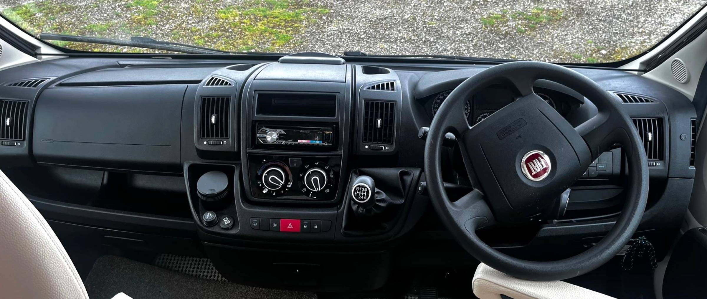berth with 4 travelling seat belts, based on a 2.3 Fiat Ducato with a 6-speed gear