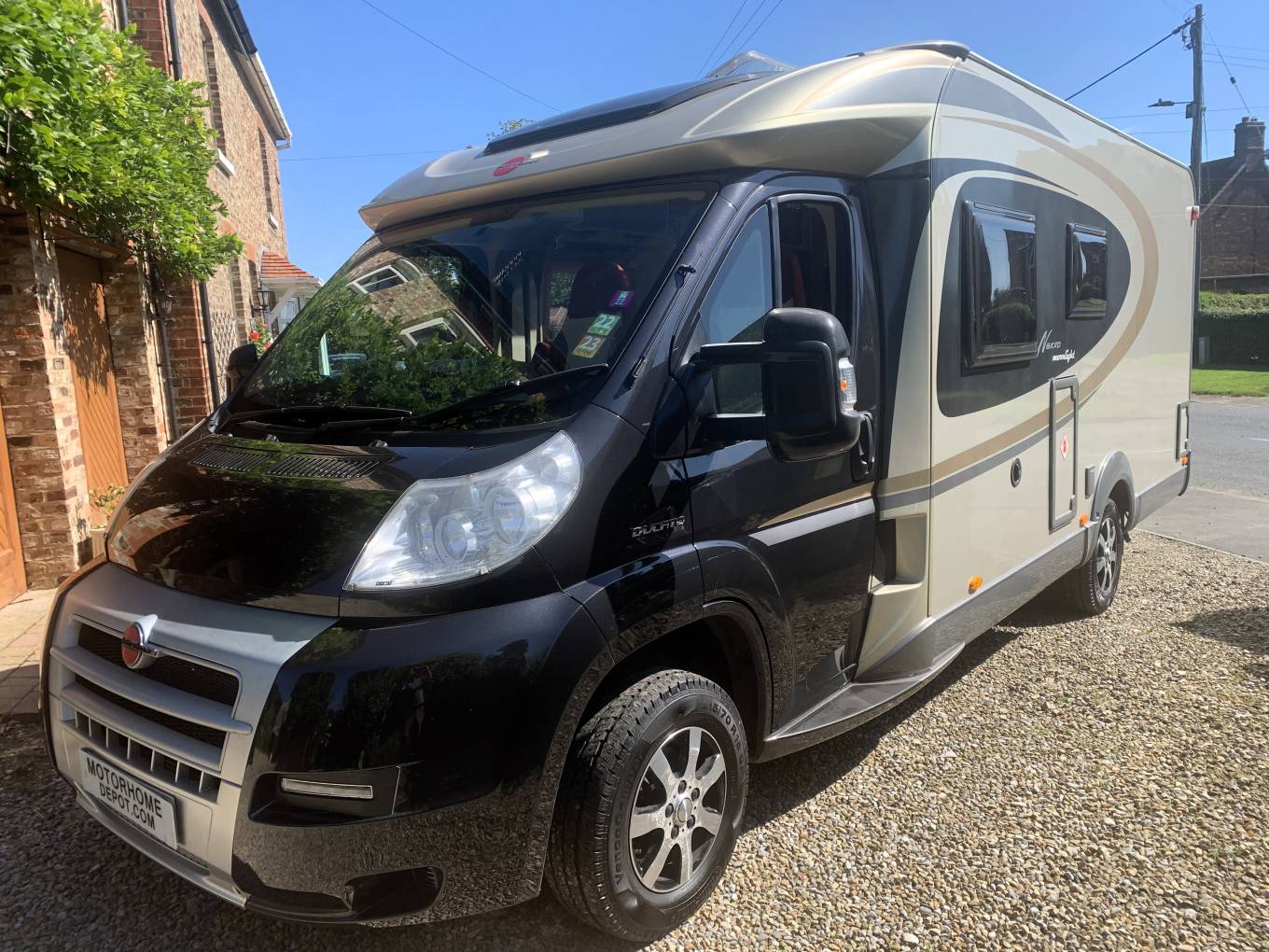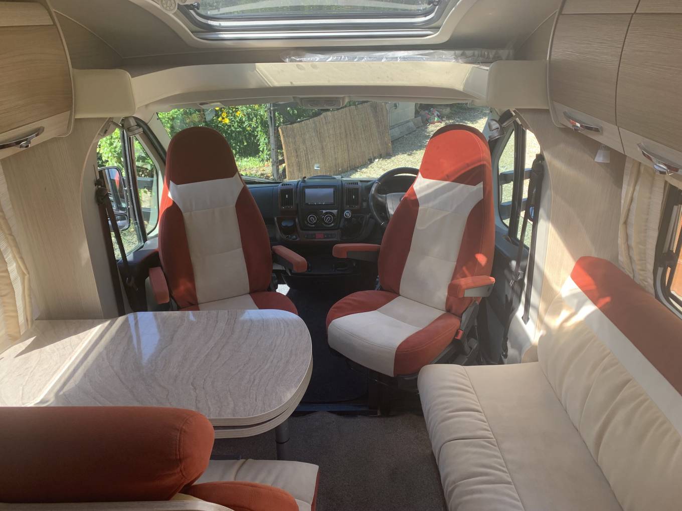Call with any questions 01423 609985. This 2013, low profile, coachbuilt motorhome is an excellent example of the Burstner Nexxo 660T Moonlight. It is an excellent opportunity, to purchase a high quality motorhome, which is in exceptional condition inside and out. It has the flexibility to work a 4 or 2 berth. It is ideal for couples, with the fixed bed at the rear, shower with toilet and sink, kitchen, front lounge 2 swivel seats. This distinctive motorhome, built on a Fiat Ducato chassis, is approx. 6.80 metres long, has a 2287cc diesel engine, matched to a 6-speed manual transmission, which powers up the hills, sits on the motorway using cruise control and has covered 30,023 miles. The GVW is 3500 kg, so anyone can drive it. Every inch of it, is clean, tidy and in the best condition it could be. At the rear, on the offside is access to storage underneath the fixed bed. The washroom has toilet, sink and shower, with enclosure. Opposite is the kitchen, well equipped with 2 gas burner hob, Whirlpool combi oven and grill, tall Dometic fridge with freezer, sink and plenty of cupboard space. The front lounge is light, with large windows allowing plenty of natural light to enter. In the dinette, there is a bench seat, forward facing, with 2 full seatbelts and a small sofa next to the habitation door, this becomes a nice area for relaxing, using the 2 swivel seats in the cab and the table that extends. Up front, there is cab air conditioning, cruise control, 2 x swivel seats, radio with Bluetooth capability, sunroof and Remis blinds. Additional features include, 800W solar panel, Truma heating system, several USB and electric sockets, gas BBQ point, wind out canopy, external TV ariel and bike rack. Whilst away, tune in to your favourite TV with pan European satellite system and for security, there is a safe. Registered in October 2013, it comes with good service history, new habitation report and MOT to July 2024. Viewing by appointment only near Easingwold. Part Exchanges welcomed on this vehicle, for further information and photos, please call us on 01423 609985 quoting reference 222405