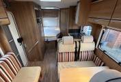 As you enter, you'll notice the spacious and inviting living area. The bench seats on your left are perfect for relaxation or engaging conversations with your fellow travelers when it's time to dine or turn in for the night, these seats effortlessly transform into a comfortable centre dinette or a cozy double bed, ensuring a restful night's sleep wherever you park.