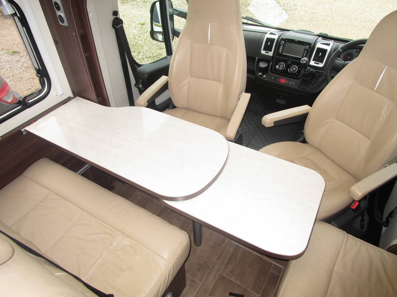 This Vehicle is located close to East Midlands Airport. Here we have an absolutely beautiful low mileage one owner example of the Burstner Nexxo T685, This particular vehicle benefits from being the 55 edition and as such features enhancement to an already generous spec. The rear island bed is sat above large garage and is positioned off centre allowing a separate shower to fit comfortably in one corner meaning this vehicle is extremely well equipped while also remaining a manageable size. To the centre of the vehicle is the washroom which houses a cassette toilet and hand basin along with plenty of storage, Opposite the washroom is a well equipped kitchen with a full size fridge freezer, combination oven and grill, sink and three burner hob. Moving toward the front of the vehicle there is generous dining area that is trimmed in luxurious Ferra leather and can comfortably seat five by utilising the two front swivel seats. In addition to the standard spec this particular vehicle benefits from a Comprehensive service history, Omnistor wind out canopy awning, Satellite navigation, Second leisure battery, Cab air con, Cruise Control, Silver screens, Tracker, Bike rack, Reversing Camera and Media system. Part Exchanges welcomed, for further information and the extended photo file please call Tom on 01332 806905, 07572 398972, 01144 055993, 07943 110576.