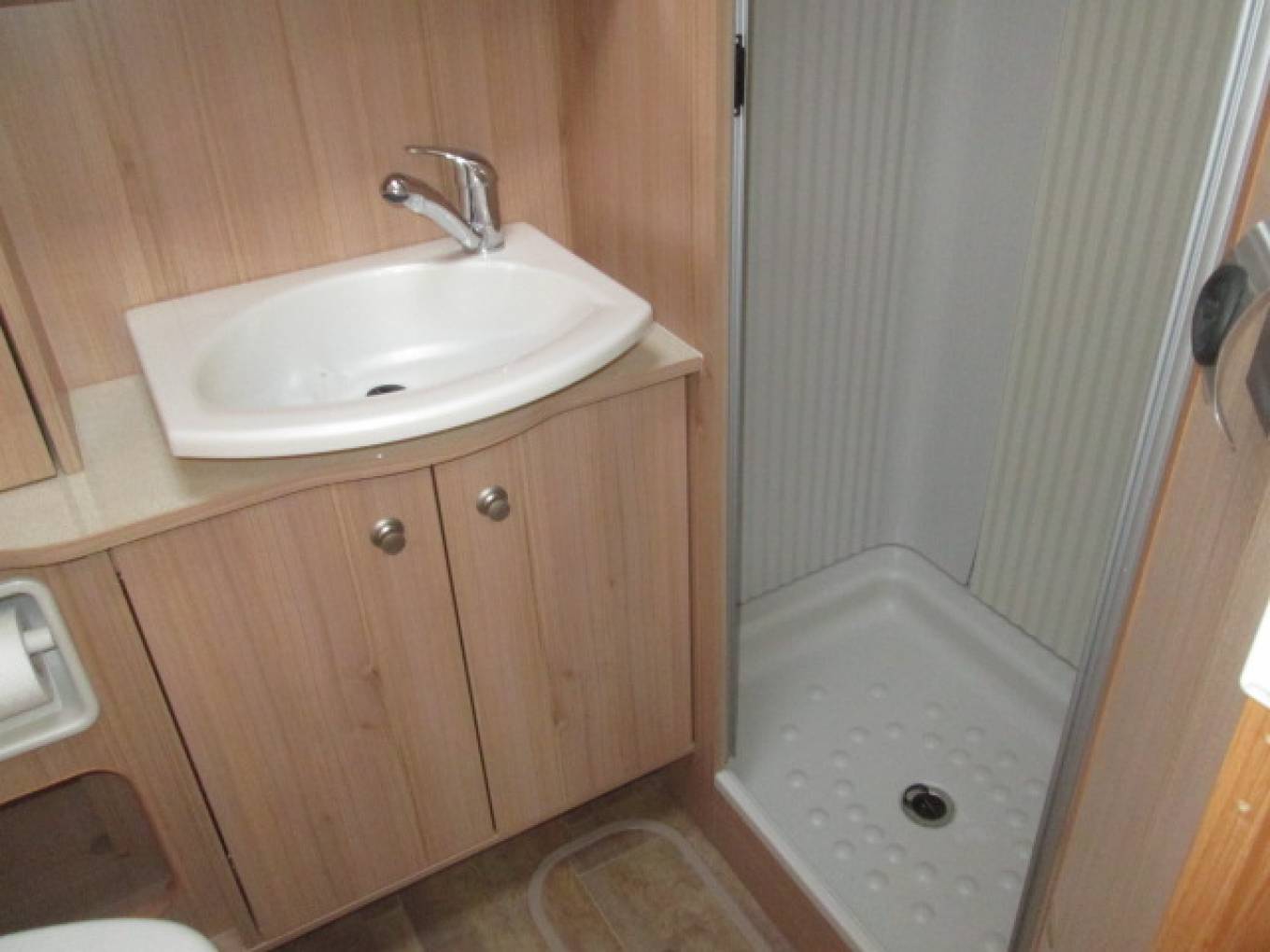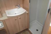 Spacious End Washroom has a Thetford Toilet, Sink, Full Size Shower Cubicle,