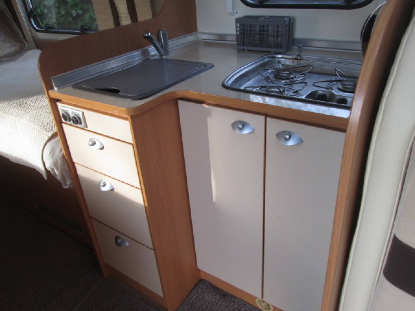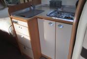 The Kitchen Area comes complete with Dometic OG 3000 30 Litre Oven & Grill, Hob, Sink, Microwave, Fridge Freezer and Clever Storage Facilities