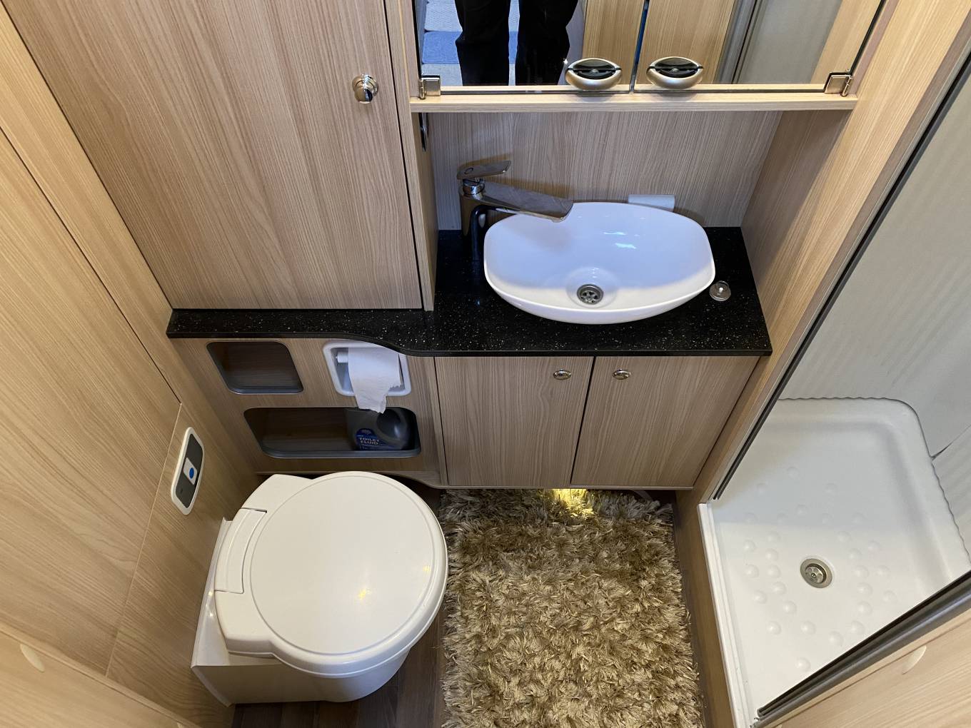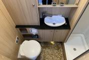 Large twin single beds are aft of the kitchen and across the rear is a spacious bathroom which includes a Thetford Cassette toilet, wash handbasin, a separate shower, wardrobe and plenty of other cupboards.