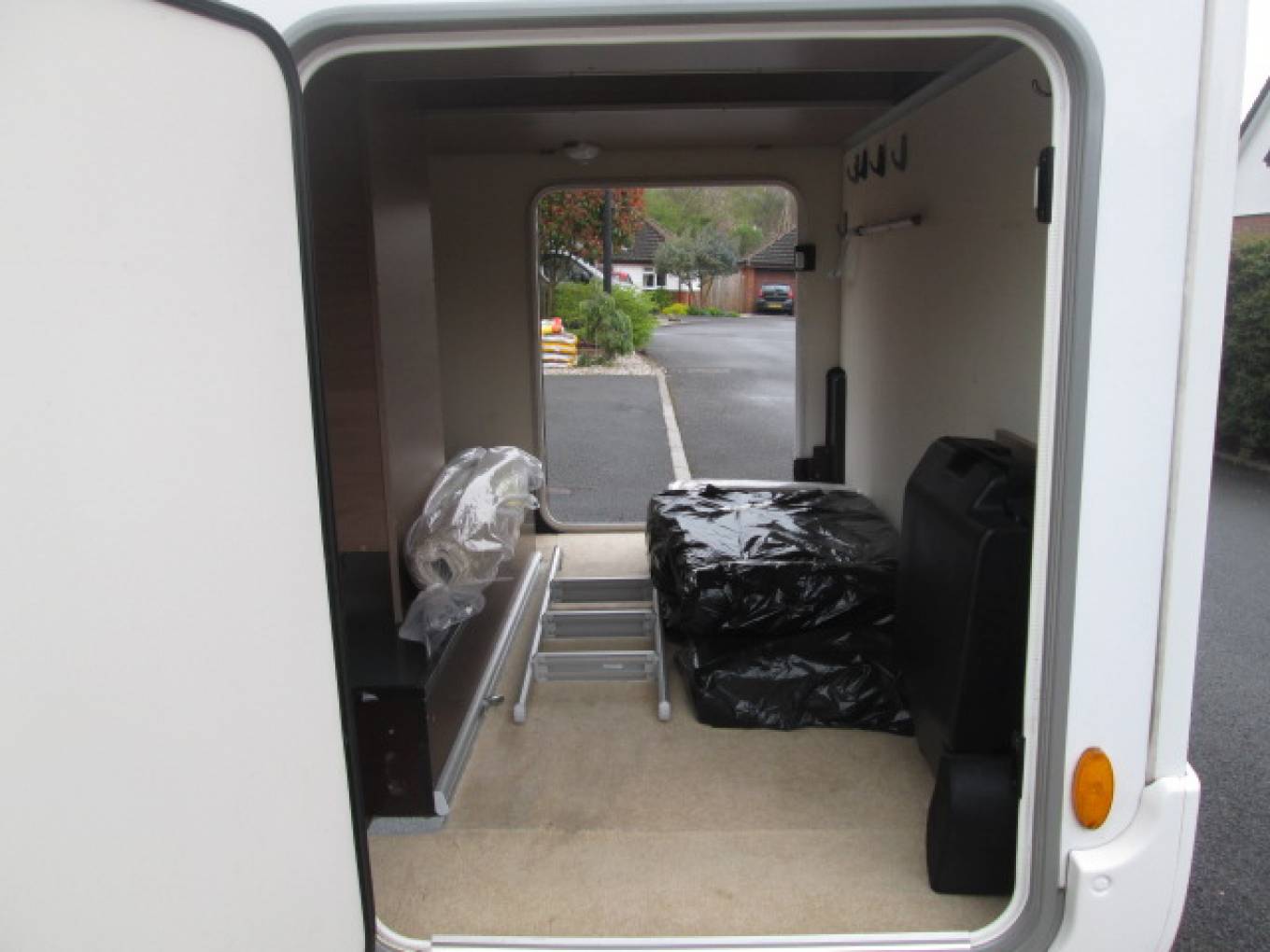 Superb Spec including, Wind Out Awning, Cab Aircon, 4 x Travelling Seat Belts, Swivel Cab Seats, Sat Nav, Entertainment System, Solar Panel, Alloys, Avtex TV, BBQ Point, External Electrical Point, Cruise Control, Inverter, In Built Fresh / Waste Water Tanks, Truma Digital Heating System, Electric Step, Gas Bottle, ABS Brakes, CAT1 Alarm, Huge Rear Garage, Aerial, More than Ample Storage Throughout.