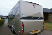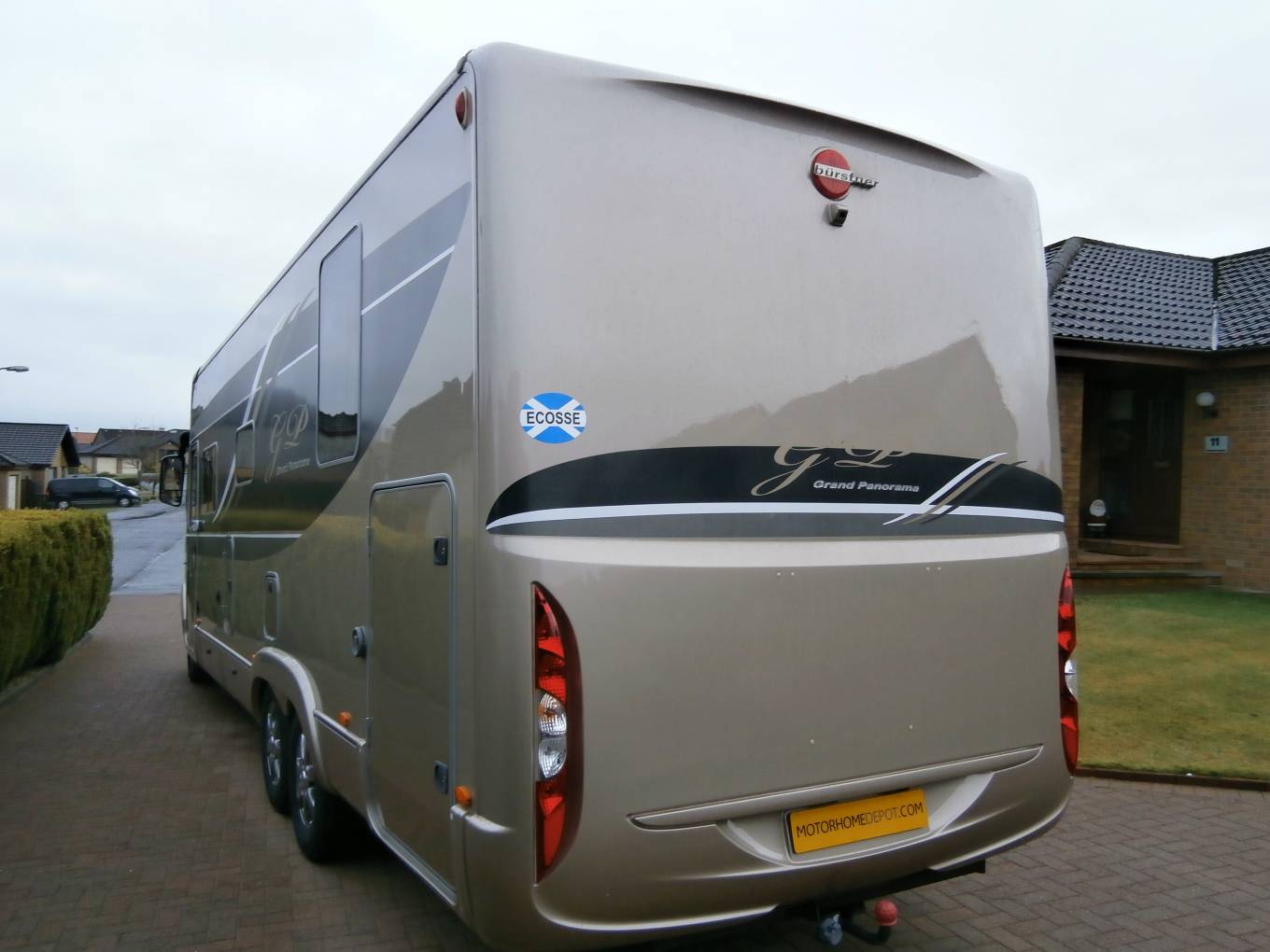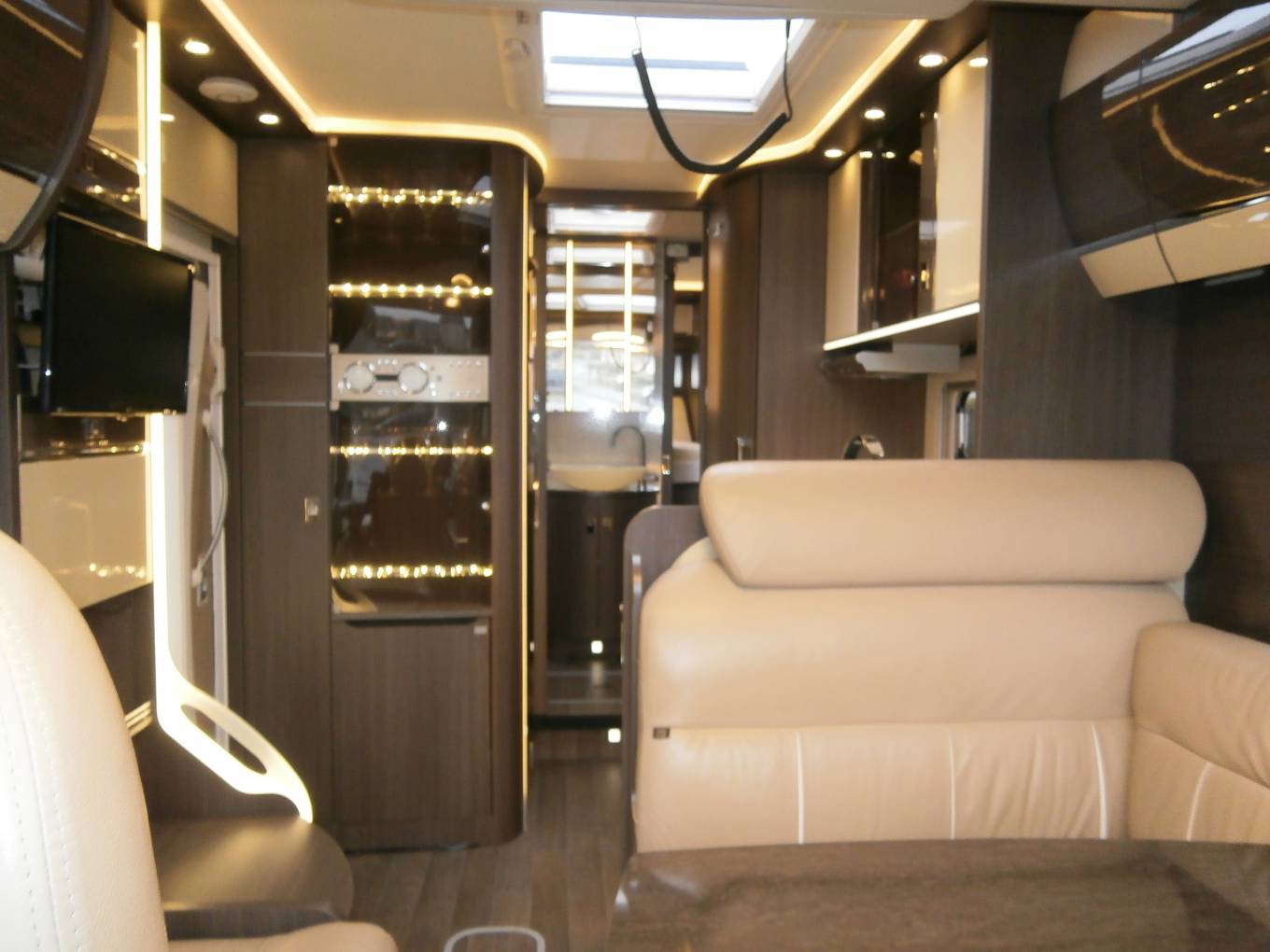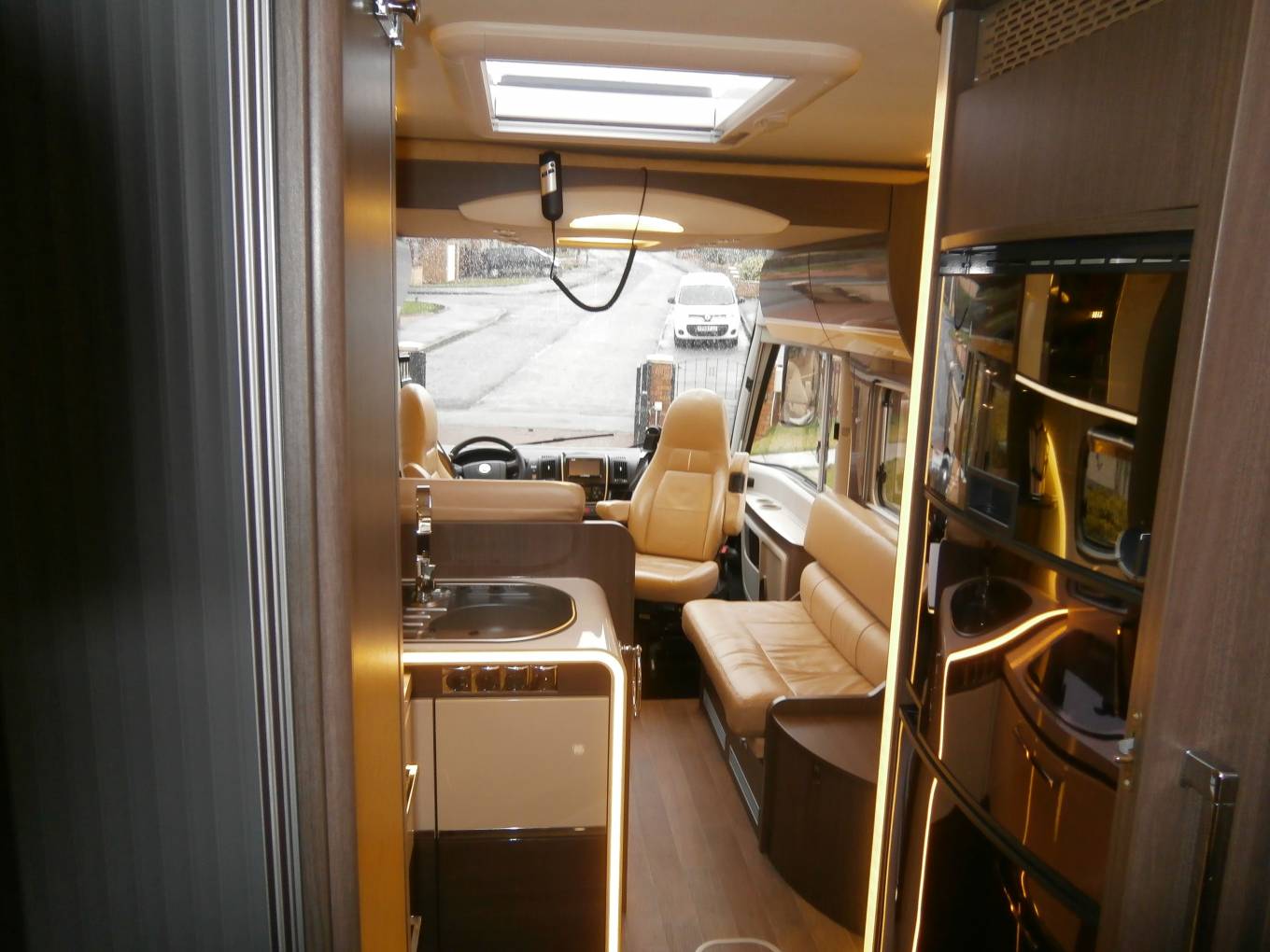 This Burstner Grand Panorama i920 is a luxurious apartment on wheels, with all the bells and whistles a discerning buyer would expect from a premium class vehicle. The Vehicle features rich cream leather upholstery offset by warm wood and high gloss, easy clean surfaces in a harmonious blend of colours. Together with gleaming stainless steel fittings, plenty of glass, and tasteful lighting, this adds up to an elegant interior. Adding to this impression are the deep wine lockers, where up to six bottles can safely be carried and displayed along with matching glassware. The galley is both beautiful and practical, with appropriately sized appliances and plenty of room for preparation and generous storage. There is a large island bed above the garage and the overhead completely hidden second bed is smoothly deployed by remote control. Extras include GAS IT refillable LPG gas bottles, 2xTV's, Tow bar, Inverta, Tracker and sat nav. Price now reduced this is a high end motorhome at a bargain price.