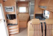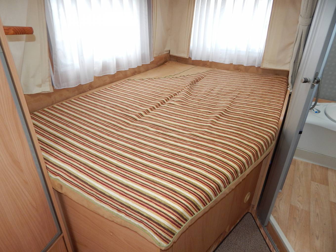 The Main bed layout is a large double French bed which can be lifted for access to the underfloor storage and the Combi style Truma Boiler, heating is supplied by blown air.