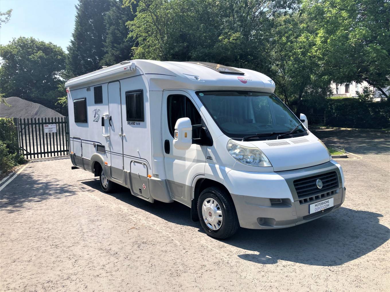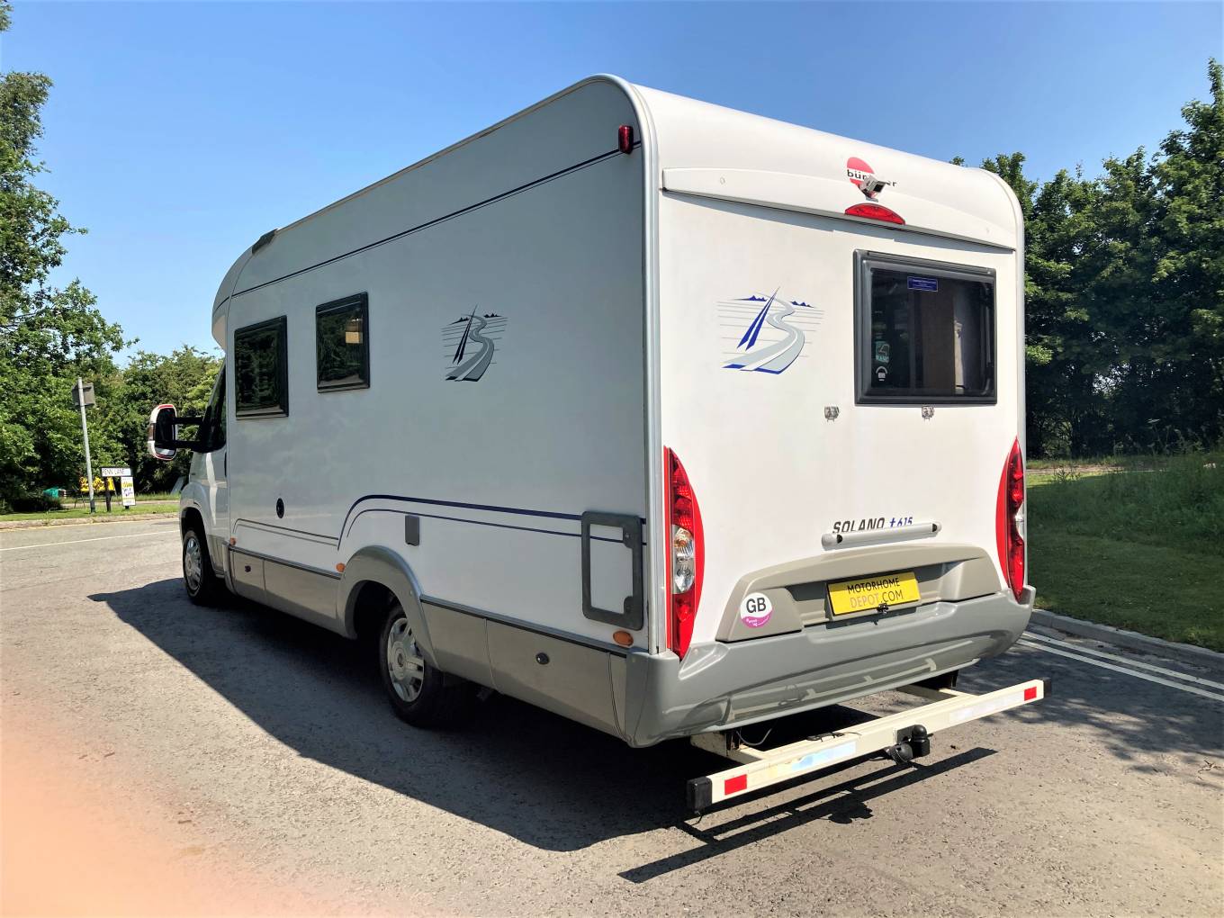 Here is a wonderful example of the top of the range German built fixed bed low profile BURSTNER Solano T 615 with 4 belted seats and less than 3500 kg gross weight meaning anybody with a full licence can drive it.