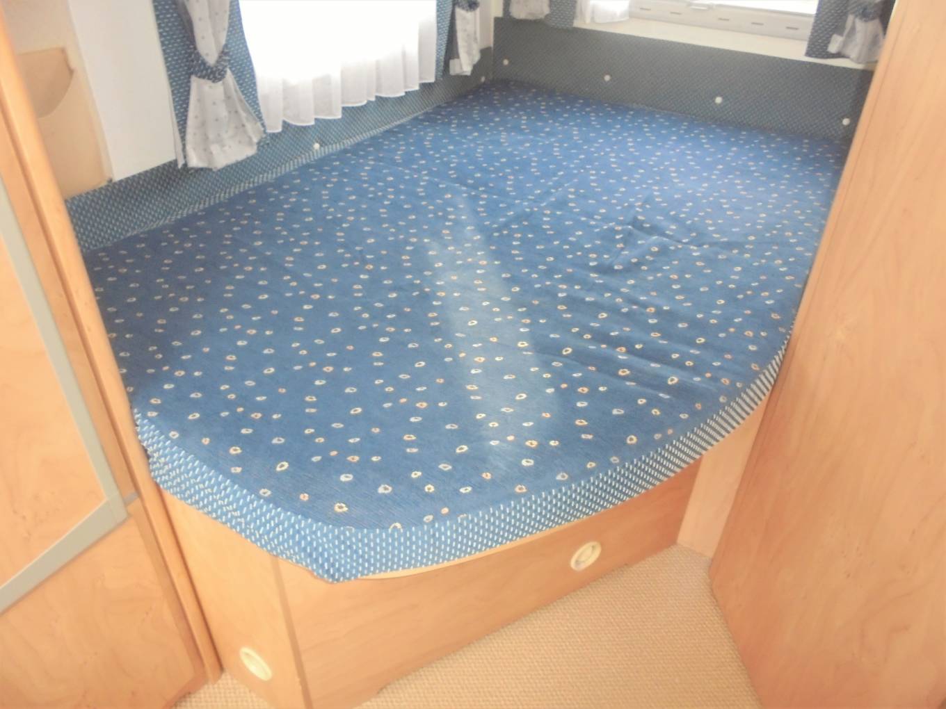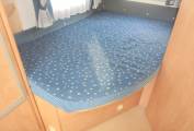 Layout is fixed rear double bed over storage area, rear washroom, central kitchen and front lounge dining area which converts to a further double bed.