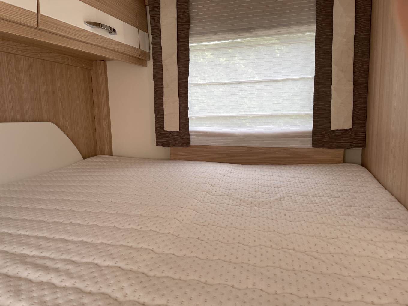 the rear of the motorhome, you have a large fixed transverse double bed with