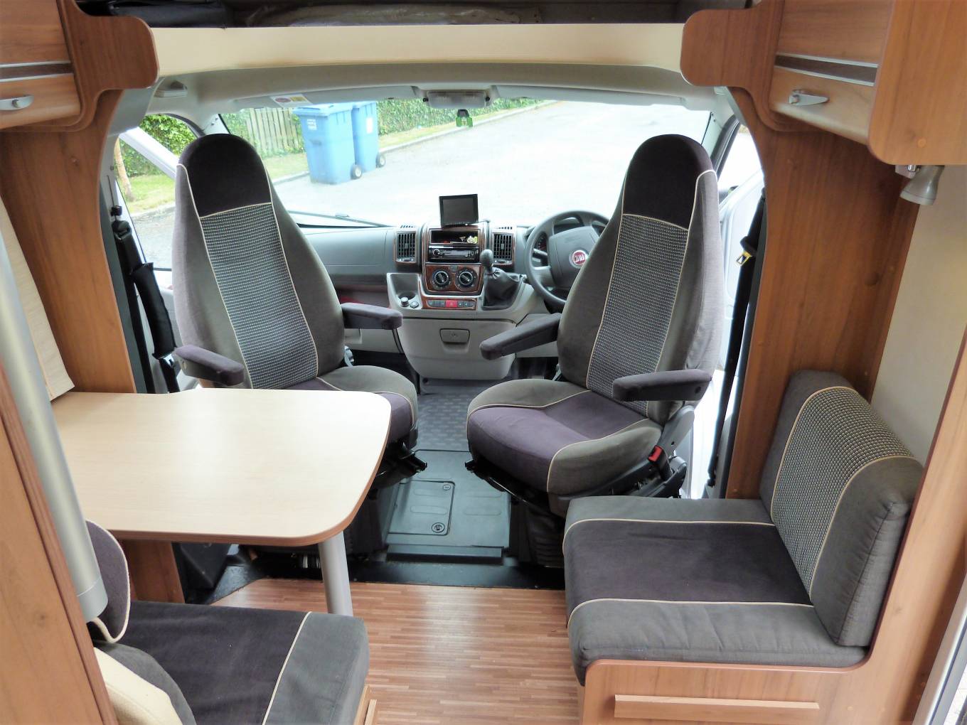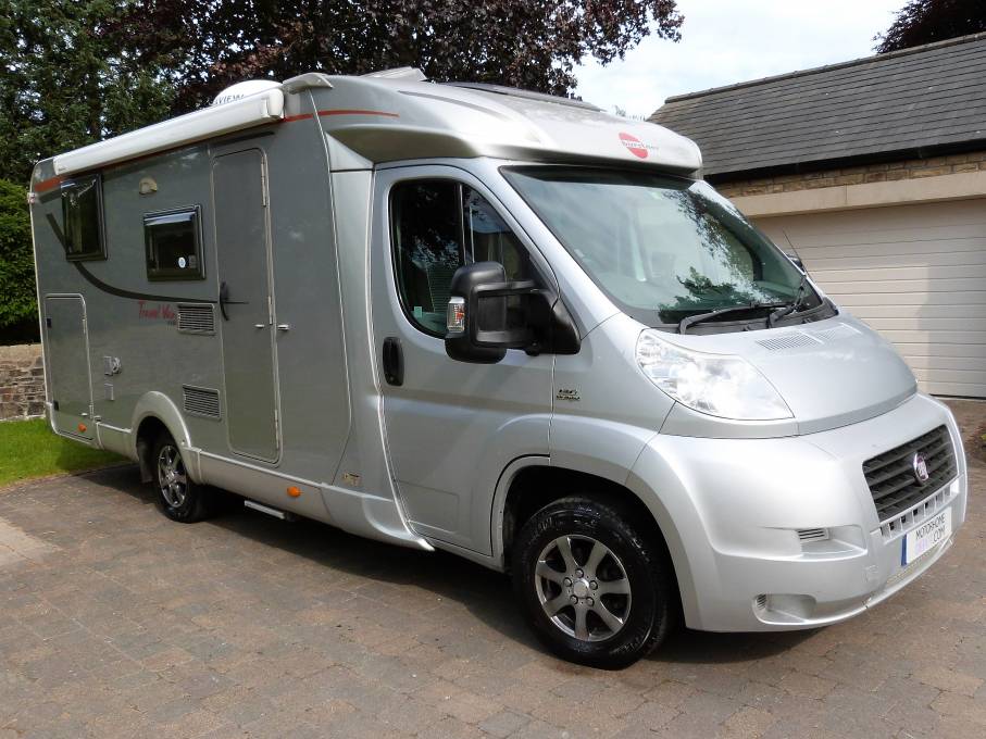 Call with any questions 01423 609985. This 2008 Burstner Travel Van T620 low profile, coachbuilt motorhome is in good condition inside and outside. It is ideal for couples, being 3 berths with 2 single beds at the rear above the garage which opens on the offside, washroom, forward facing dinette, that could be made up as an occasional bed, with 4 seatbelts overall. This distinctive silver coloured motorhome, is built on a Fiat Ducato chassis, is approx. 6.60 metres long, has the impressive 2300 cc, 130bhp diesel engine matched to a 6-speed manual transmission, that powers up the hills, sits on the motorway using cruise control and has covered only 57,714 miles. Anyone can drive it, given the overall permissible weight is 3,500kg. The large garage can store bikes and any other items needed. Above inside, the 2 single beds can be made into a larger double if required and there is plenty of storage above and below the beds. The washroom is generous in size, with toilet, sink, and shower. The galley kitchen has a 3-gas burner hob, fridge with freezer and sink. The front dinette is light, with large windows allowing plenty of natural light to enter. There are 2 forward facing seats and 2 additional seatbelts; a double bed could be made using the table and a nice area for entertaining can be created using the 2 swivel seats. Up front, there is cab air conditioning, rear view camera, cruise control, 2 x swivel seats, sunroof. Additional features include, Gemini 1 alarm, Maxview satellite system, although the current owners have not used it and a large canopy. The MOT runs until May 2022 and the extra pictures show off all its features. Viewing by appointment only near Skipton, North Yorkshire. Part Exchanges welcomed on this vehicle, for further information and photos please call us on 01423 609985 quoting reference 153445