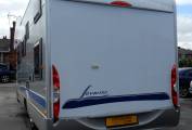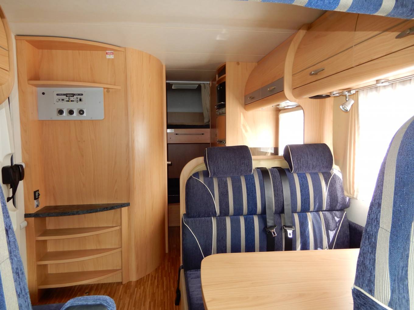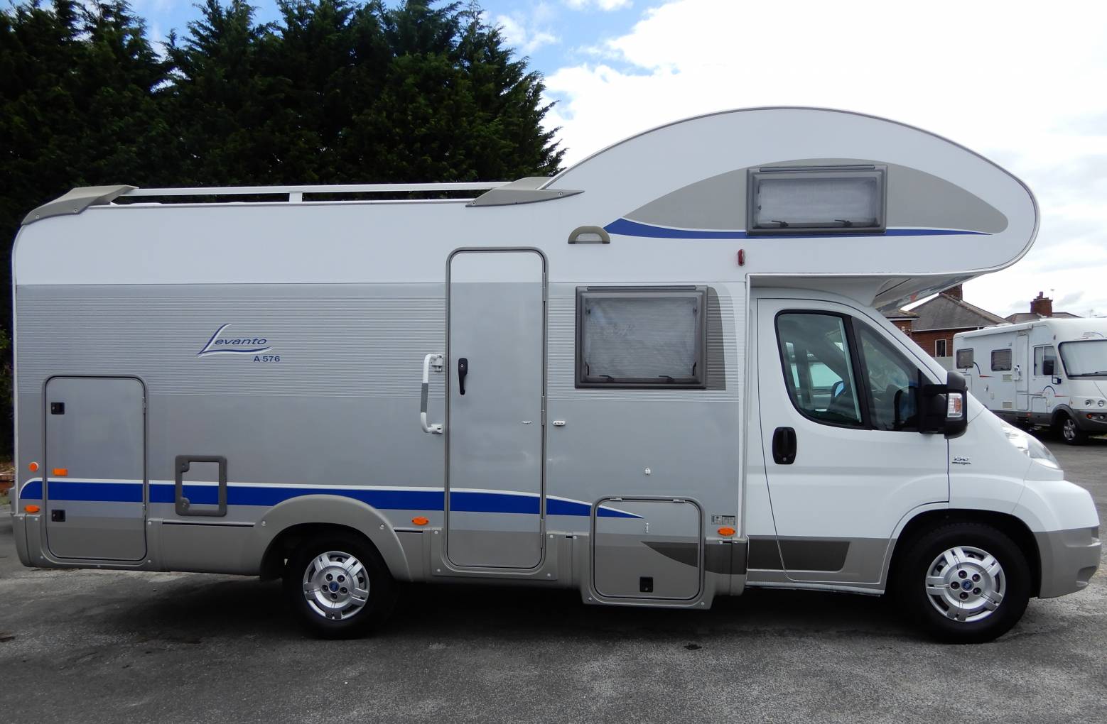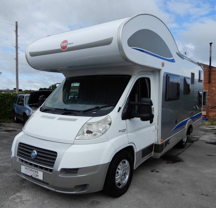 Here we have a Burstner Levanto A576, Fiat 2.3 2007 with extraordinarily low mileage of 5170, it is in fantastic condition and is genuine. it has the last 4 years service history and full habitation check, it has 4 seat belts and is a 6 berth.The cab area has cab air con 2 swivel seats and a reverse camera. the interior is traditional blue Burstner style for 2007 above is the large over cab bed. The two front seats turn to make a central dining area with a central table where all the family can enjoy a meal or just relax for the evening. There is plenty of storage above and below. the kitchen area has a fridge freezer, oven and grill, 3 gas burners, sink, mixer tap and a draining board. with lots of storage below and above. The washroom has a large separate shower with a seat, sink with mixer tap, cassette toilet and large mirror. At the rear you have bunk beds with the option of a large garage if you lift the bottom bed up, this area can be accessed from the outside.