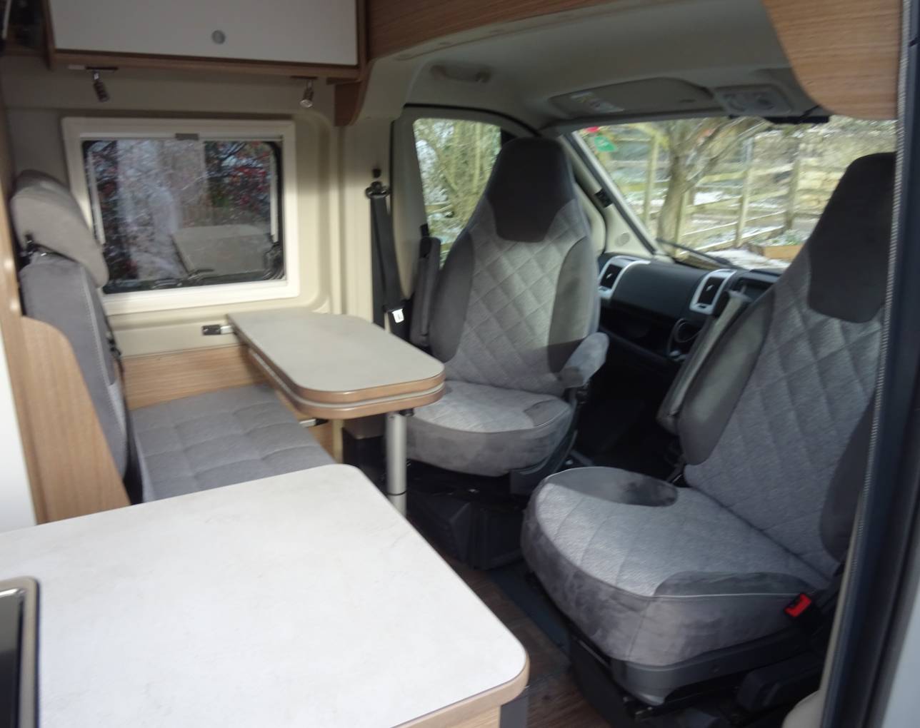 The cab is up to the minute, with a Teleco multi-media navigation receiver. We have full, side and screen black out blinds, cab air con, cruise control, reversing camera, and front parking sensors. This Camper is going out at £5000 less than its retail price in April this year, has a long list of additional specifications and so is well priced, with its world class build quality, and is still under warranty. All in all a great two person tourer, at only 5.4 metres can be used on a daily basis. It is comfortable, has a Truma gas/electric heating system, a 150 watt solar panel and a Thule awning. Please contact Jan and Paul for extra photographs and information.