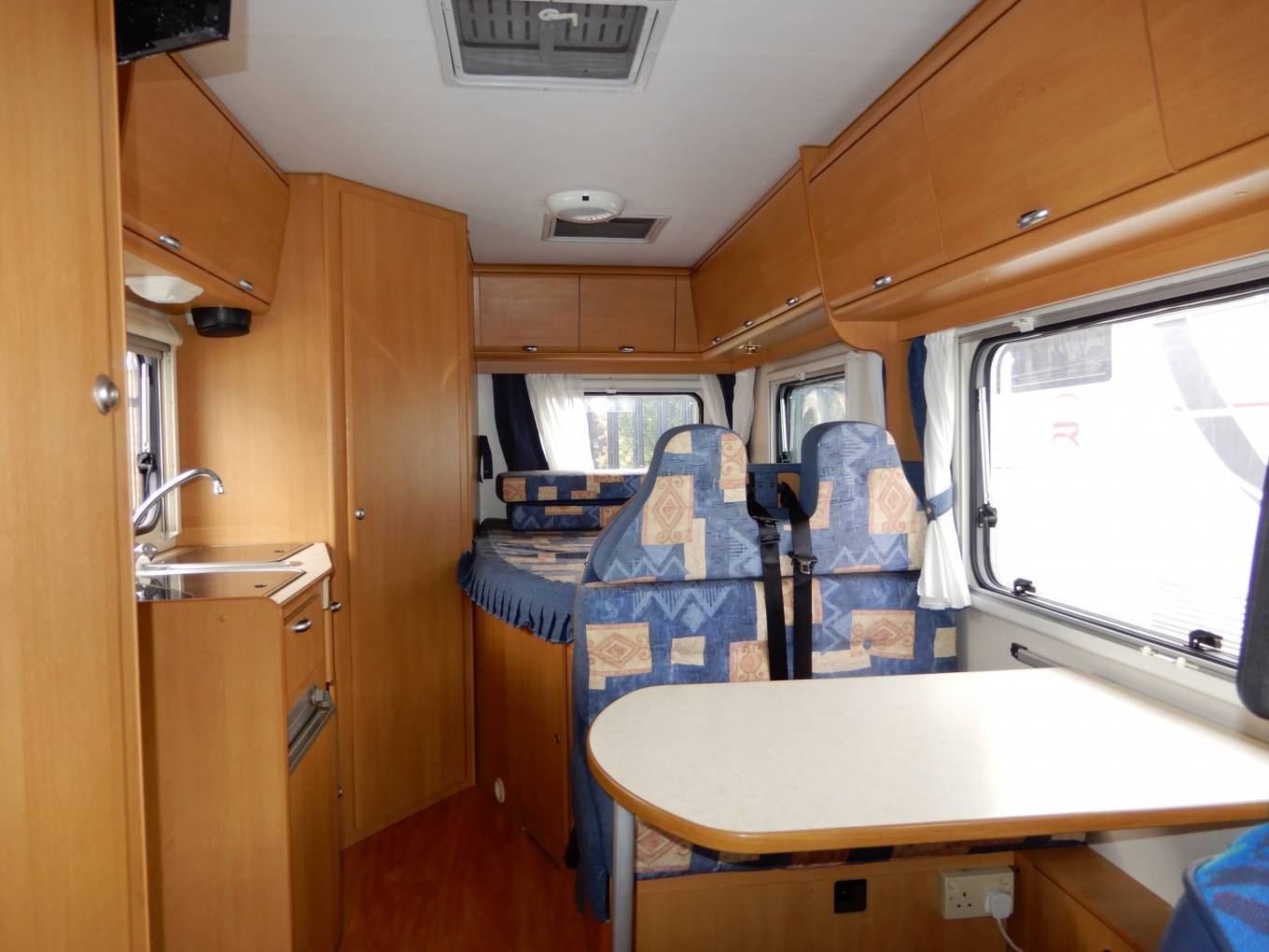 Here we have a Carioca 15 on a fiat 2ltre, 2002 with just 45000 on the clock, with 4 seat belts it is the perfect layout for a family of four to have an adventure of a lifetime. The central dining area has two forward and two rear facing seats with plenty of room to enjoy dining or simply relax in the evening and enjoy family time. The dining area can also be made into a bed, the kitchen area has a Sink, mixer tap , cooker hob with gas hobs and a grill. The large rear fixed bed has loads of storage beneath, the washroom has a separate shower, cassette toilet, wash basin and mixer tap. This motorhome has a solar panel so will keep your battery charged up where ever you are a wind out canopy and bike rack. It comes with a full habitation check, and MOT. viewing can be arranged in Mansfield Nottingham.