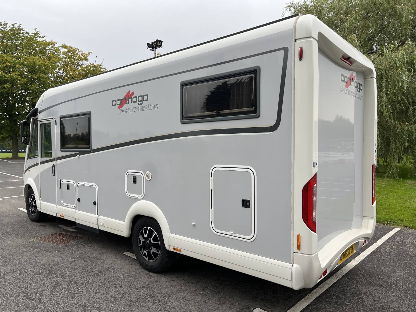 Carthago C Compactline 143, this is a High Quality, German Built A Class Motorhome with Fixed Single Beds and Pull Down Front Bed. It has 150 bhp engine with Automatic Gearbox, one owner from new, fully serviced with current habitation check and is in excellent condition throughout. At the rear is the bedroom with fixed single beds that can be made into one large double and under this is a large garage. Next to the bedroom is the bathroom area and in the centre is the kitchen. At the front is the lounge area with plenty of seating including 2 captains seats and above is a large pull down bed, which has never been used. It comes with Cab Air Con, Cruise Control, Rear Camera, Alarm, Security Tracking, Alloy Wheels, TV, Gas Low System, Solar Panel and BBQ Point. A stunning motorhome available for viewing by appointment in Preston, call for more photos and information.