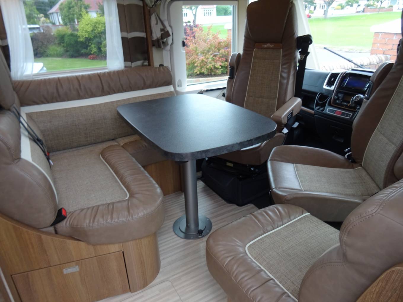 Essentially the layout is comprised of Twin rear fixed beds over a large garage (The bed can be large king if needed), en suite split washroom with separate shower, centre kitchen, forward dinette and swivel cab seats, With the cab seats swivelled, there is ample room for relaxation, dining or entertaining. There is also a large dropdown bed over the front cab to complete the 4 berths.
