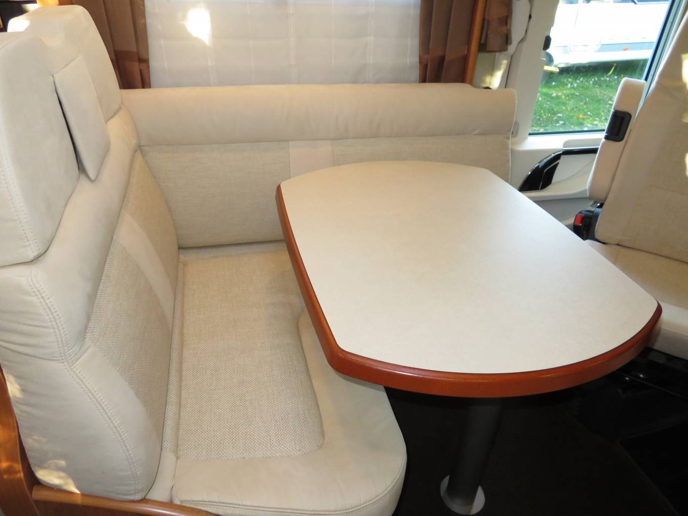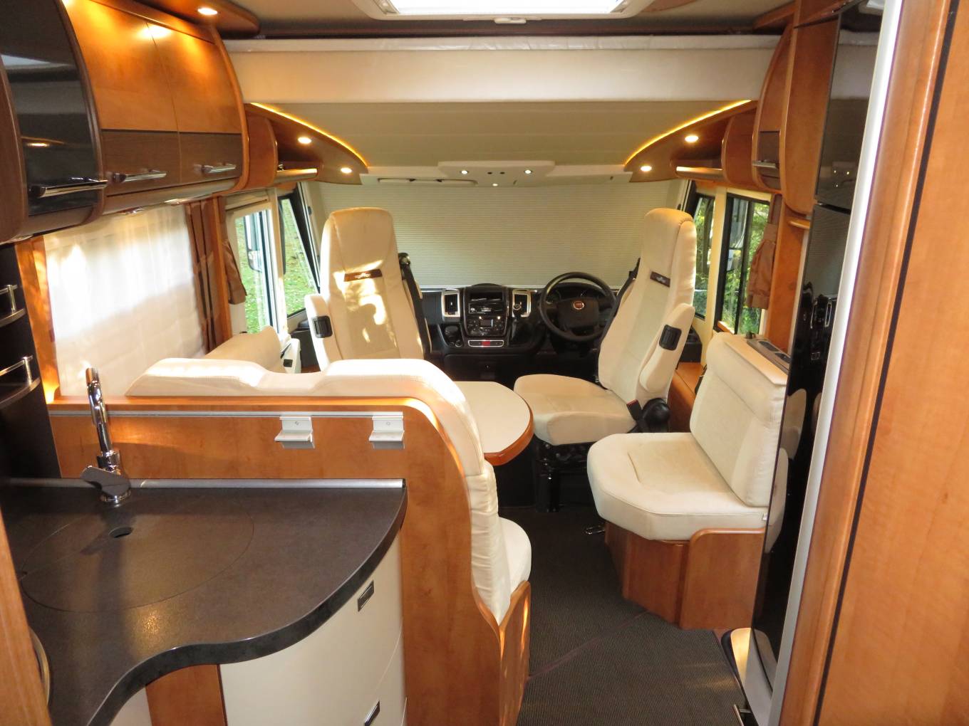 Stepping in to the habitation area of the motorhome you will immediately notice the luxury and class. The motorhome has been exceptionally well looked after by its current owner and is presented in fabulous condition. There is a wonderful lounge/dining area and with 2 swivel seats this is the perfect place to sit and relax or enjoy a wonderful meal.