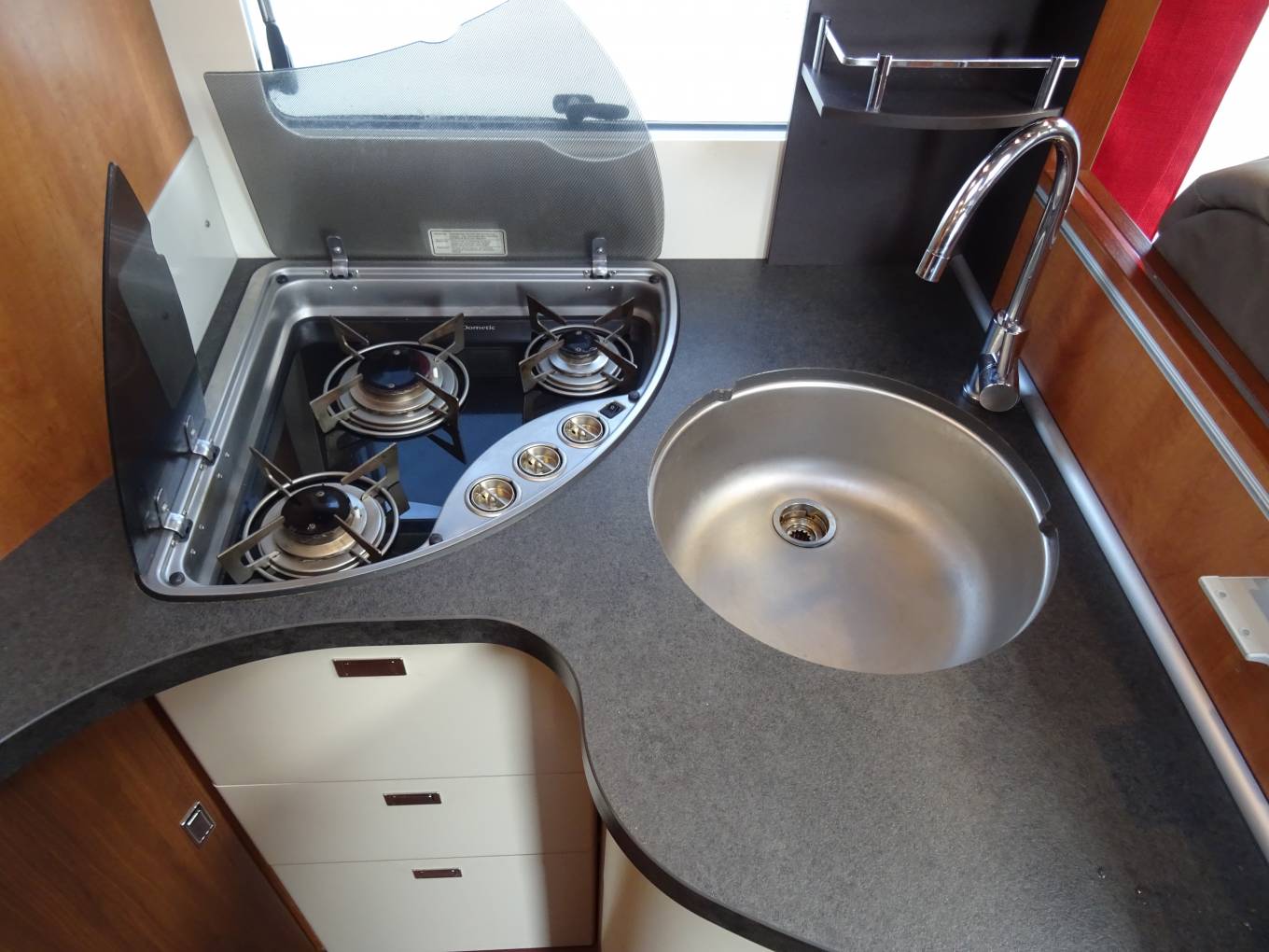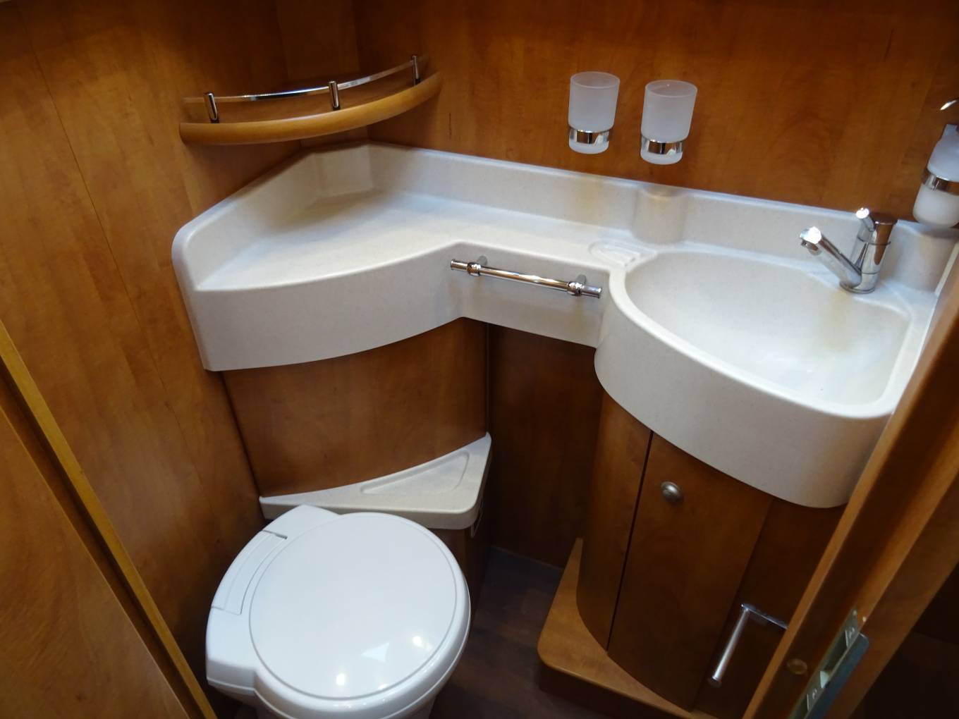 en suite washroom, with a separated shower, centre kitchen, forward dinette and