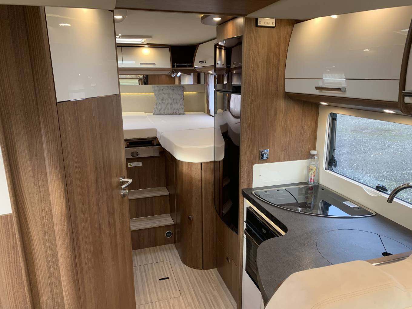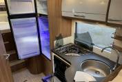 Dometic fridge with freezer, sink and plenty of cupboard space.