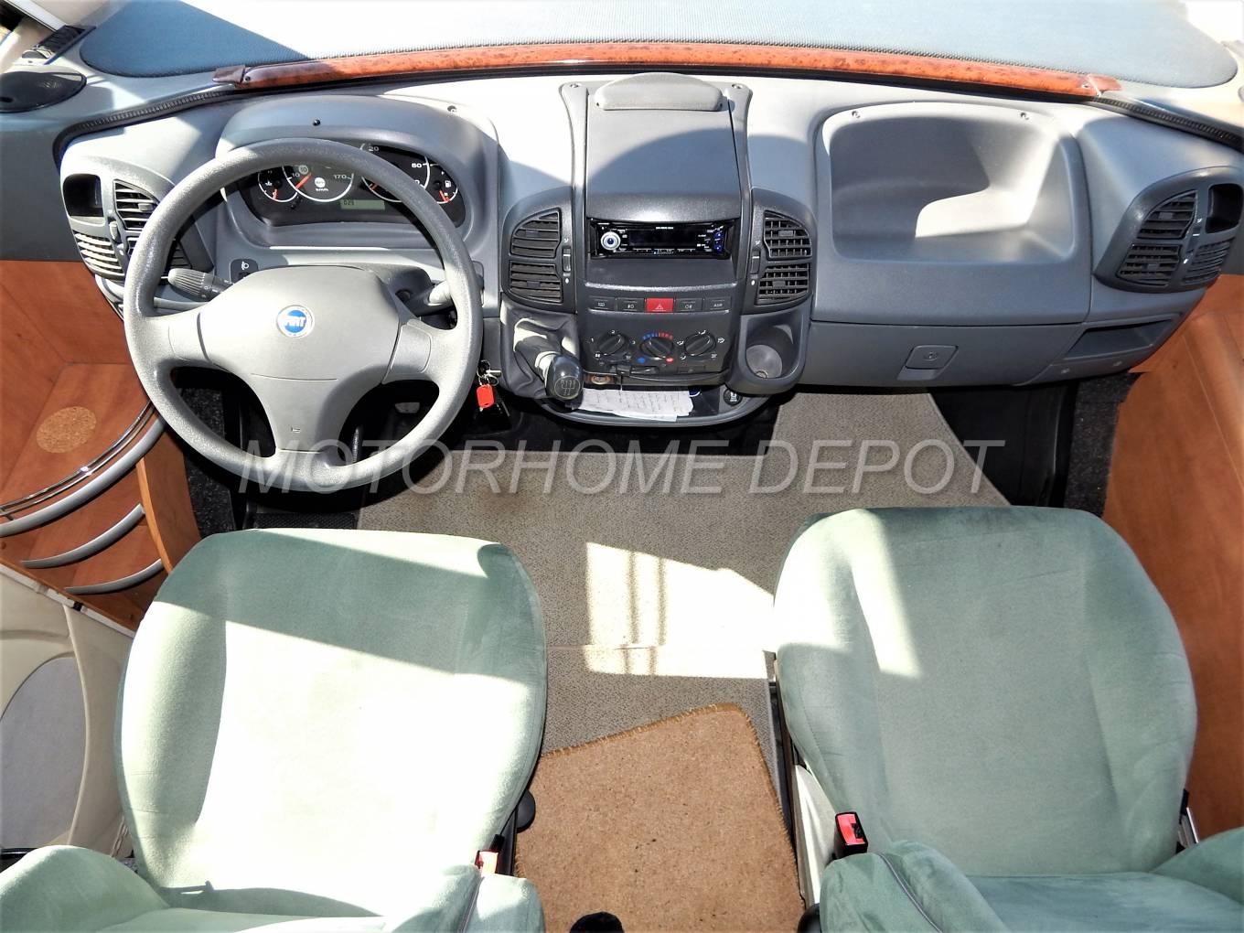 From one of Germanies finest Motorhome builders comes this quality A Class, the Carthago Chic I47. Based on the Fiat Ducato chassis with a 2800 turbo diesel engine in the 5 speed manual form. Having had only two owners from new this vehicle was imported from Germany by the original owner. It has a well documented service history including 13 mechanical service receipts, the last service 12/20. 2 Timing Belt replacements the last being 05/15. The cab benefits from: power assisted steering; air conditioning, single cd head unit, electric heated mirrors; blinds to front screen & side windows.