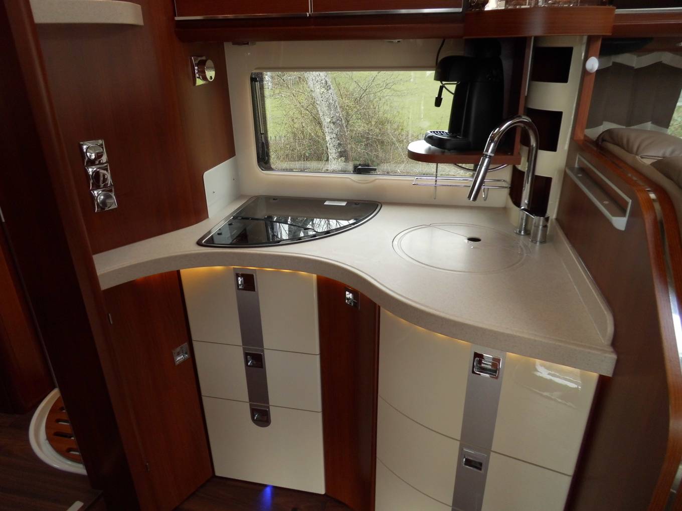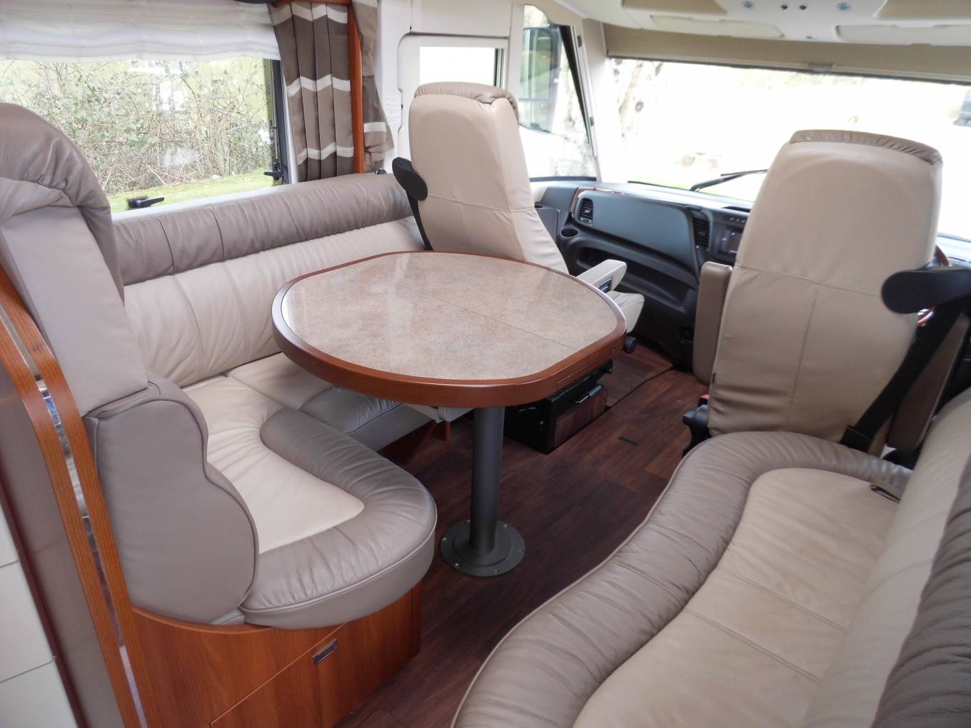 There are two types of people who will look at this advert. Those who are curious and like to look at beautiful machines. And the people who are serious about buying one of, what is probably, the highest quality motorhomes produced. If you are the former, feast your eyes on the photos and enjoy! If the latter then read on for the highlights, but contact me for a comprehensive set of photos and a more in-depth listing of what is included in this superb motorhome. Up front there is the impressive cockpit ensuring a smooth and comfortable touring experience, all built on a 3.0L Iveco Daily 65C with 8-speed automatic gearbox, full air suspension and 205HP at your disposal. Sitting high up and with the enormous panoramic A-class windows you are in total control of your journey. Swivel the captain’s chairs into the living area and enter a luxurious world of sumptuous leather furnishings and gloss finished cabinets. Entertaining your guests from the curvaceously styled kitchen will be a breeze, with 3-burner hob, sink, Tec cabinet including 160L fridge, freezer, oven grill combi unit and Espresso machine. The rear of the motorhome can be partitioned off with a separate washroom, cubicle with rain shower and two supremely comfortable single beds, which can be made into a double if required. Additional sleeping is in the huge drop-down double over the cab. Externally there is a large heated garage, shower unit, wind-out awning and towbar. The list goes on and on... with almost every conceivable extra you could have the price of this motorhome would have been £170,000 at new. You are purchasing a virtually unused motorhome at a massive discount. Viewings are by appointment so contact me to make arrangements. The vehicle is located in Pontypridd.