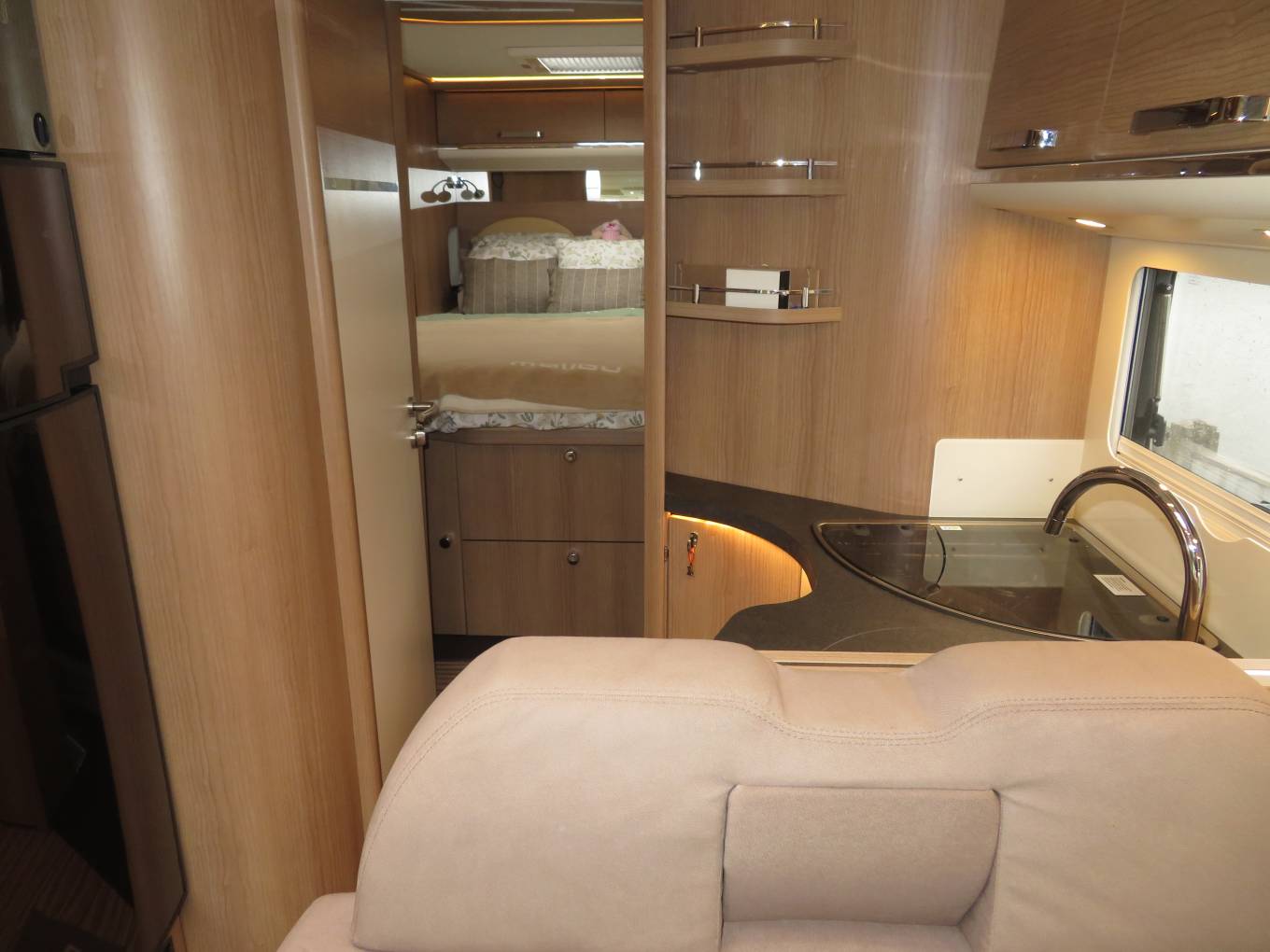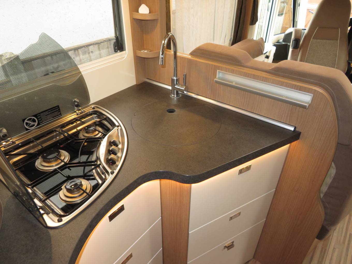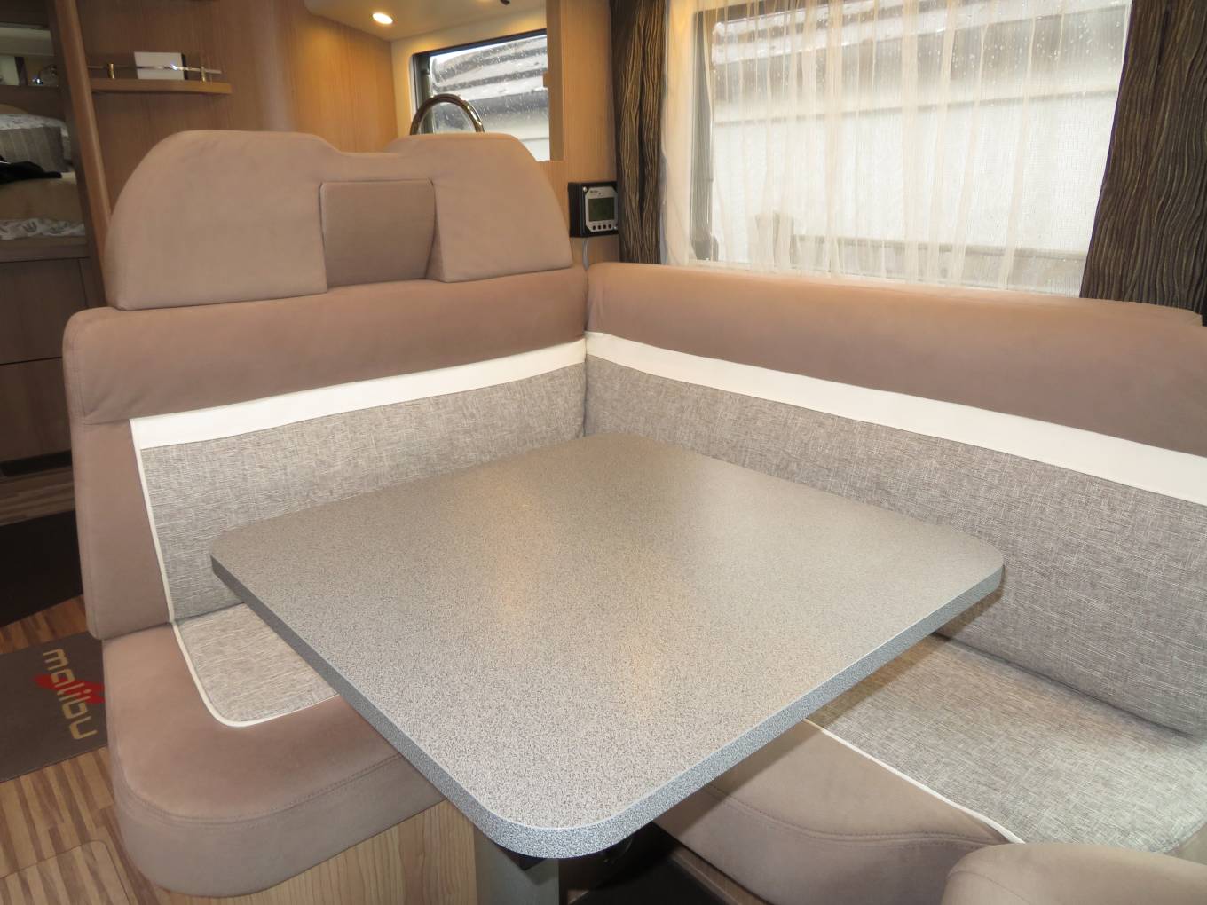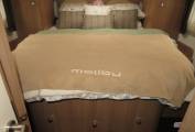 The Malibu I 500QB has a wonderful living area giving you all the luxury and comfort you could wish for. At the front you have a lounge/dining area making use of the large captain chairs, L shaped sofa and a further side sofa. The current owner have put in a smaller table top for increased space but has the larger table should you prefer. Moving back there is a well equipped kitchen which includes gas hob and sink on one side and a large fridge with separate freezer and oven and grill on the other. There is loads of cupboards and storage space for all your utensils and ingredients.