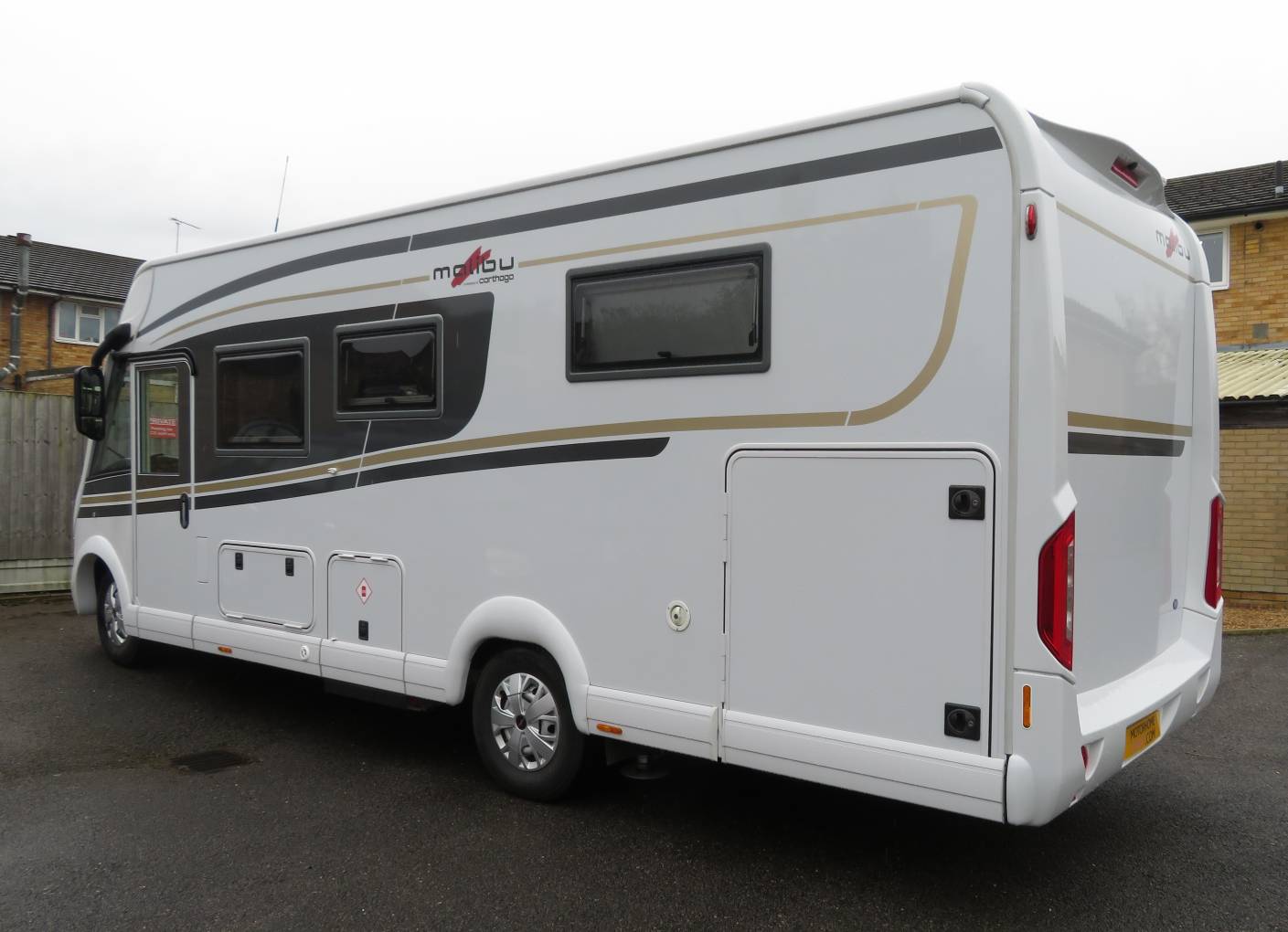 The Carthago Malibu I500QB is the height of luxury and this 4 berth with 4 traveling seat belts is presented in fantastic condition that is a credit to the one owner from new. Carthago are renowned for the highest build quality and stunning interior and this motorhome is no exception.This 2020 model was registered in Jan 2021 and has so many outstanding features it is impossible to list them all, it has a lovely comfortable living area and is amazing to sleep in with two enormous beds including a Queen sized fixed Island bed at the rear. It comes with loads of storage space including an extremely large garage with load capacity 250kg, ideal for electric bikes and anything else you wish to take on long trips away.