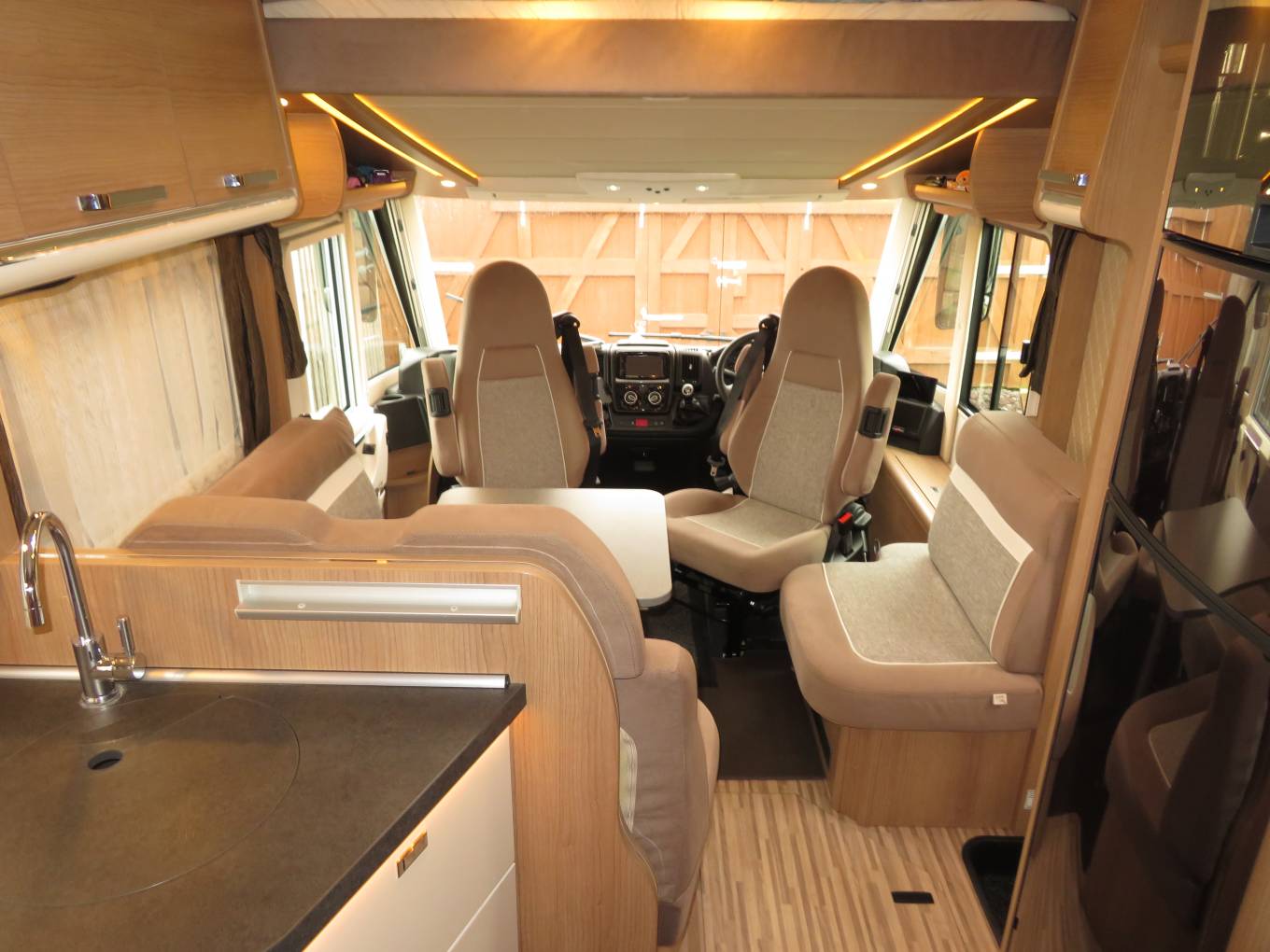 This Carthago is built on the Fiat chassis and has a 2.3l engine with 6 speed manual gear box and upgraded 160 Bhp. The cab comes with the Eco and Touring packs including cab air condition, reversing camera, DAB+ radio with touch screen, ESP, ABS, ASR, Hillholder, Traction Plus and Hill Descend control. In addition rear air suspension and easy to operate self levelling system have also been added.