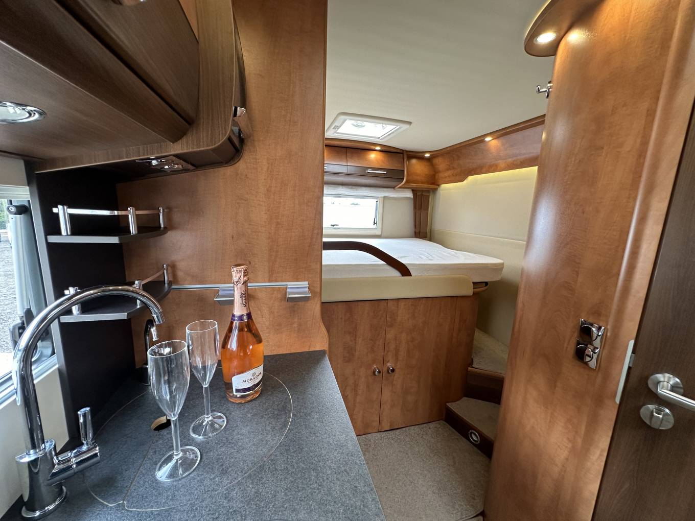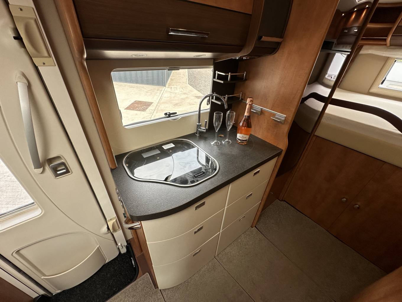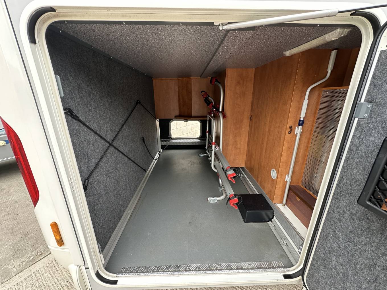 This Carthago also has a fully lockable large rear garage with lots of storage space. It currently has a bike rack already fixed inside and lighting to allow better visibility.