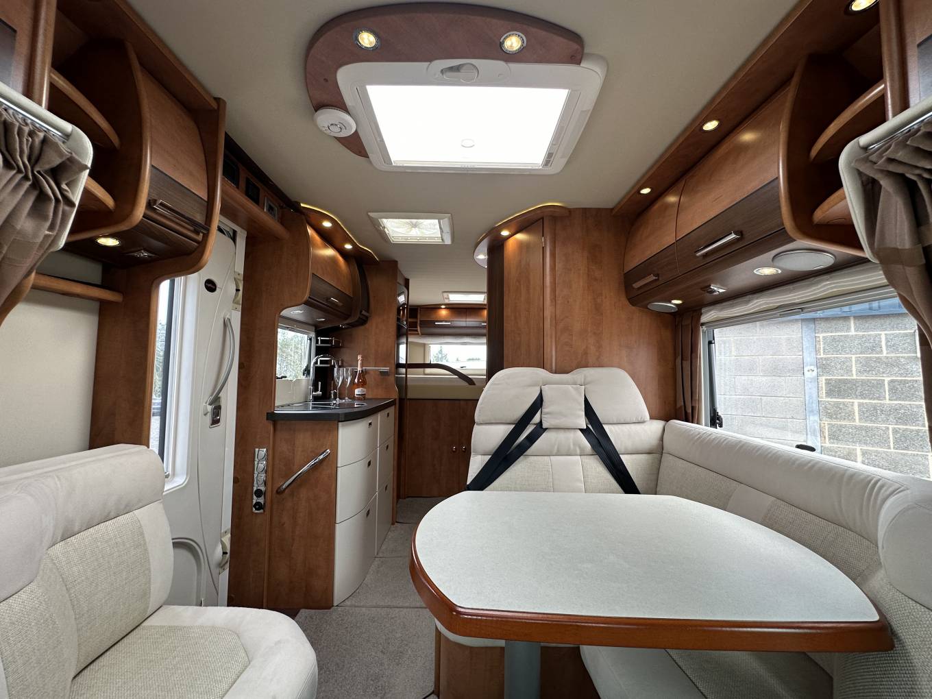 The front lounge offers a great amount of seating including the two front cab swivel seats around a fully adjustable table in the centre, this lounge area also gives you 2 extra travelling belts which is a total of 4 seatbelts including the swivel seats in the cab area.