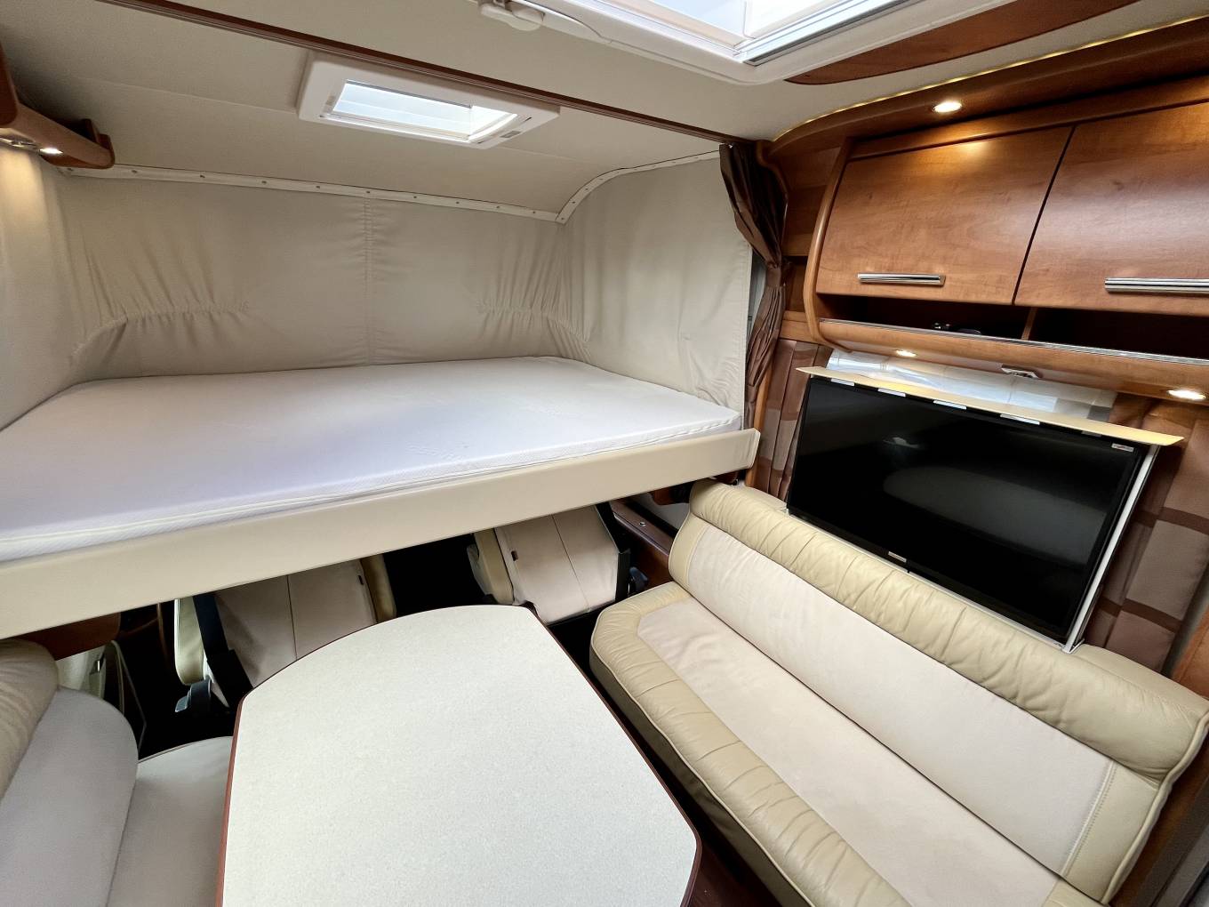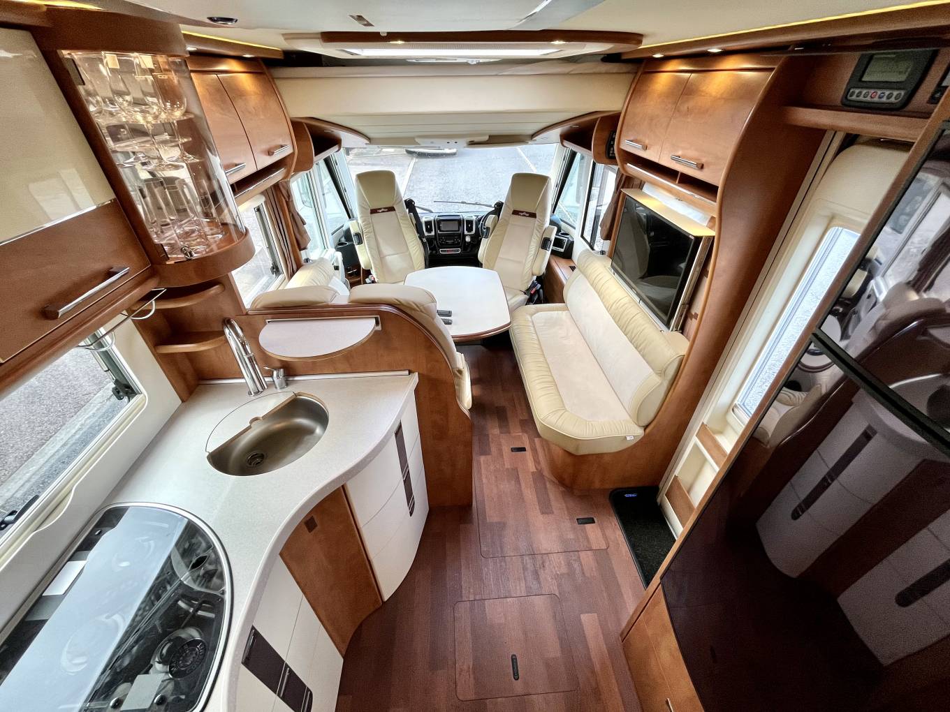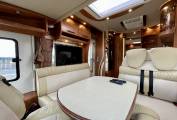 The layout of the Cathargo Chic features a widely sought after rear island bed, which is built above a large garage space offering ample storage space for larger items such as mountain bikes. A second drop down double bed can be found at the front of the motorhome, which stows away above the main living space and with the press of a button and folding the front seats down, quickly provides the second large double bed.