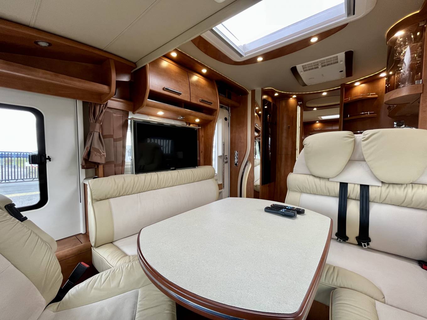 Washroom facilities are also centrally located and can be accessed from both sleeping areas with minimal disruption to others during the night. An extremely well lit and spacious washroom layout when compared to other motorhomes and featuring a desirable separate shower cubicle.