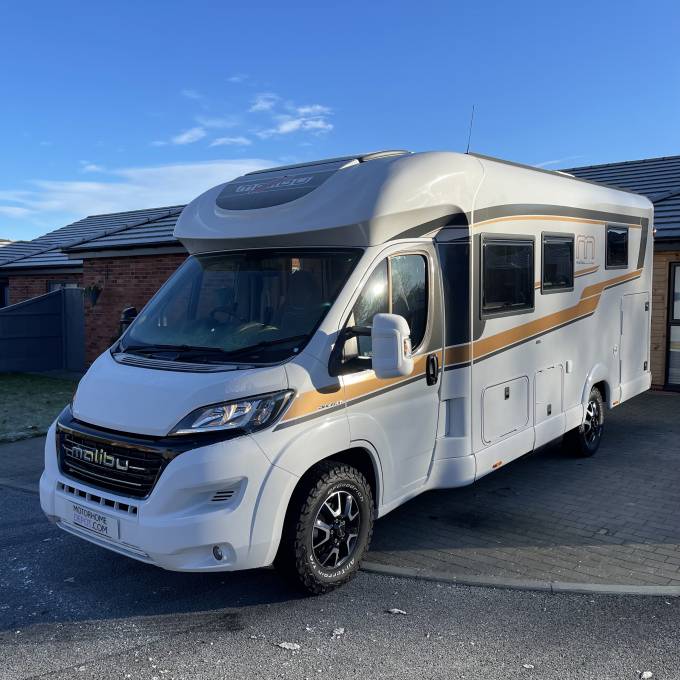 Welcome to the sale of this Cathargo Malibu T440 QB based on a 2.3 Fiat with the fantastic 9 speed automatic gearbox. This premium motorhome comes in immaculate condition throughout and with a fantastic spec such as new All-Terrain tyres, Solar Panel, external BBQ & shower points, reverse camera and many more.