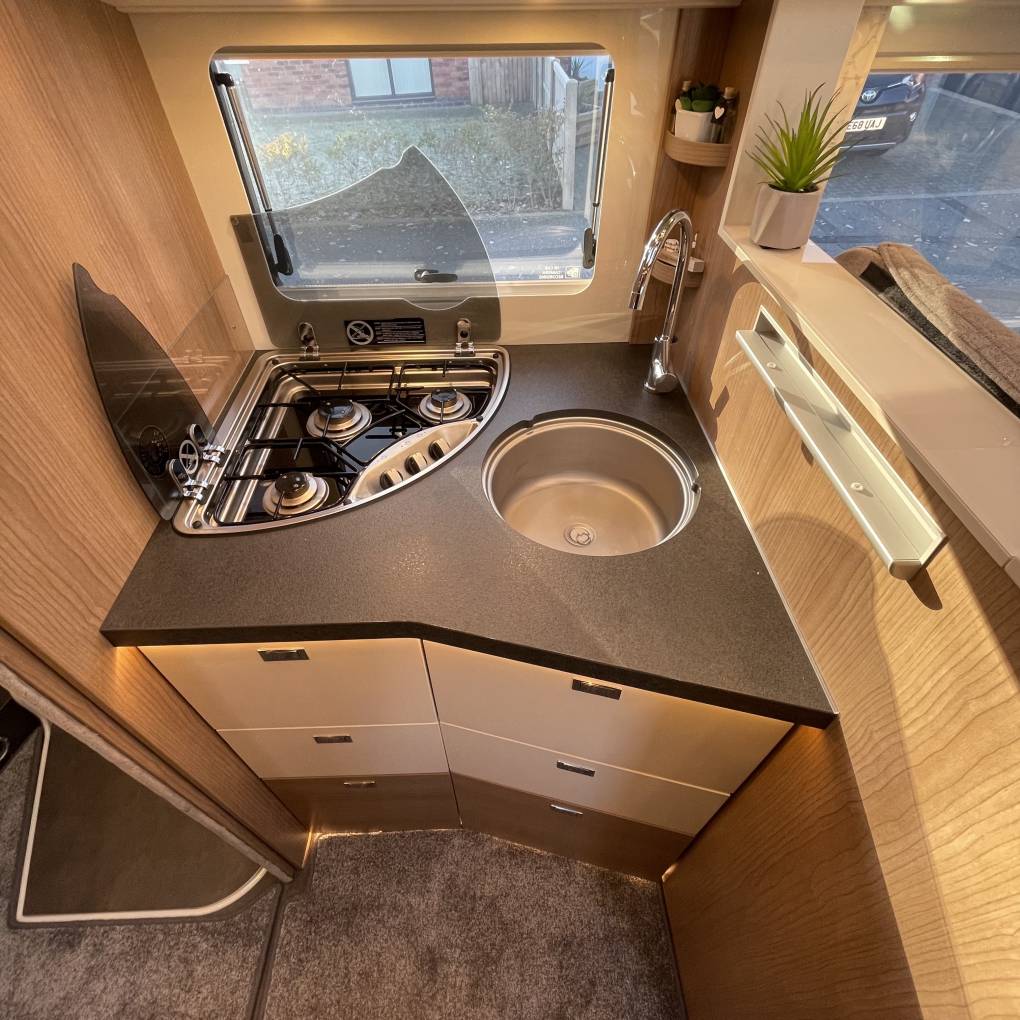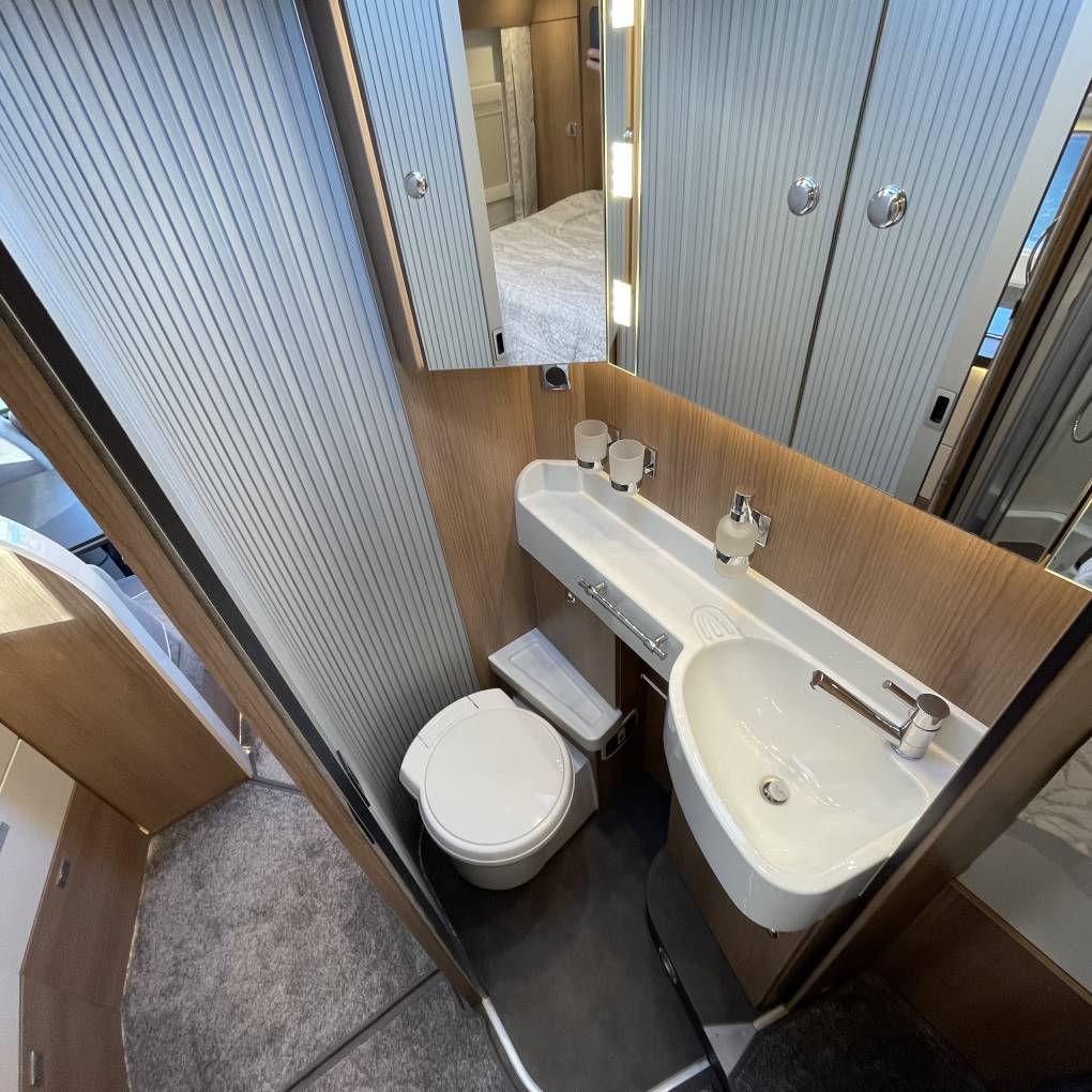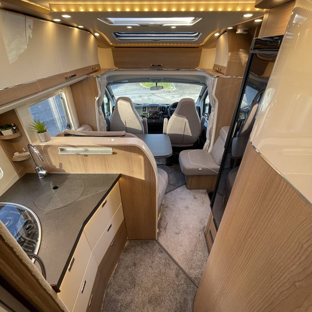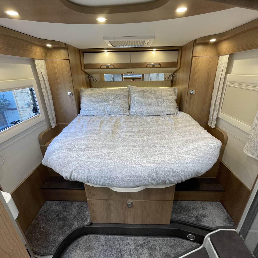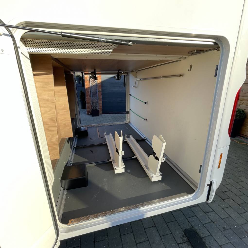 If you are looking for something high in quality with design and layout then look no further. The large rear heated garage comes equipped a bike rack and huge storage space for all your needs and is accessible from both sides of the motorhome externally. Internally all your fixtures and fittings are finished to the highest of standards. Your rear fixed island bed allows accessibility from both sides of the bed and the head rest can be raised to allow for more room when the bed is not in use. In the kitchen area you have a large fridge freezer that can be opened from either side of the door. With the upgraded 4000kg chassis this also allows for a greater payload therefore allowing you to carry everything you need without worry.
