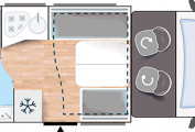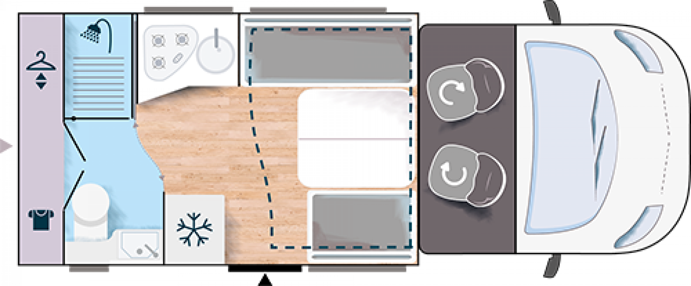 Chausson has done a brilliant job with the layout, the spacious lounge takes maximum advantage of the internal space with decent travel seats and 2 rear seat belts, all this possible due to the use of an electric drop down bed, reducing storage needs for bedding, The rear washroom is very spacious and with a completely separate shower cubicle gives the feel of a much larger motorhome.