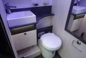 Measuring just under 6m in length it has a midship kitchen including dual fuel hob, grill, oven, sink with hot water and a large fridge freezer. The rear washroom area comes with separate shower, toilet, basin and as well as a large wardrobe for storage has enough space to dress in.