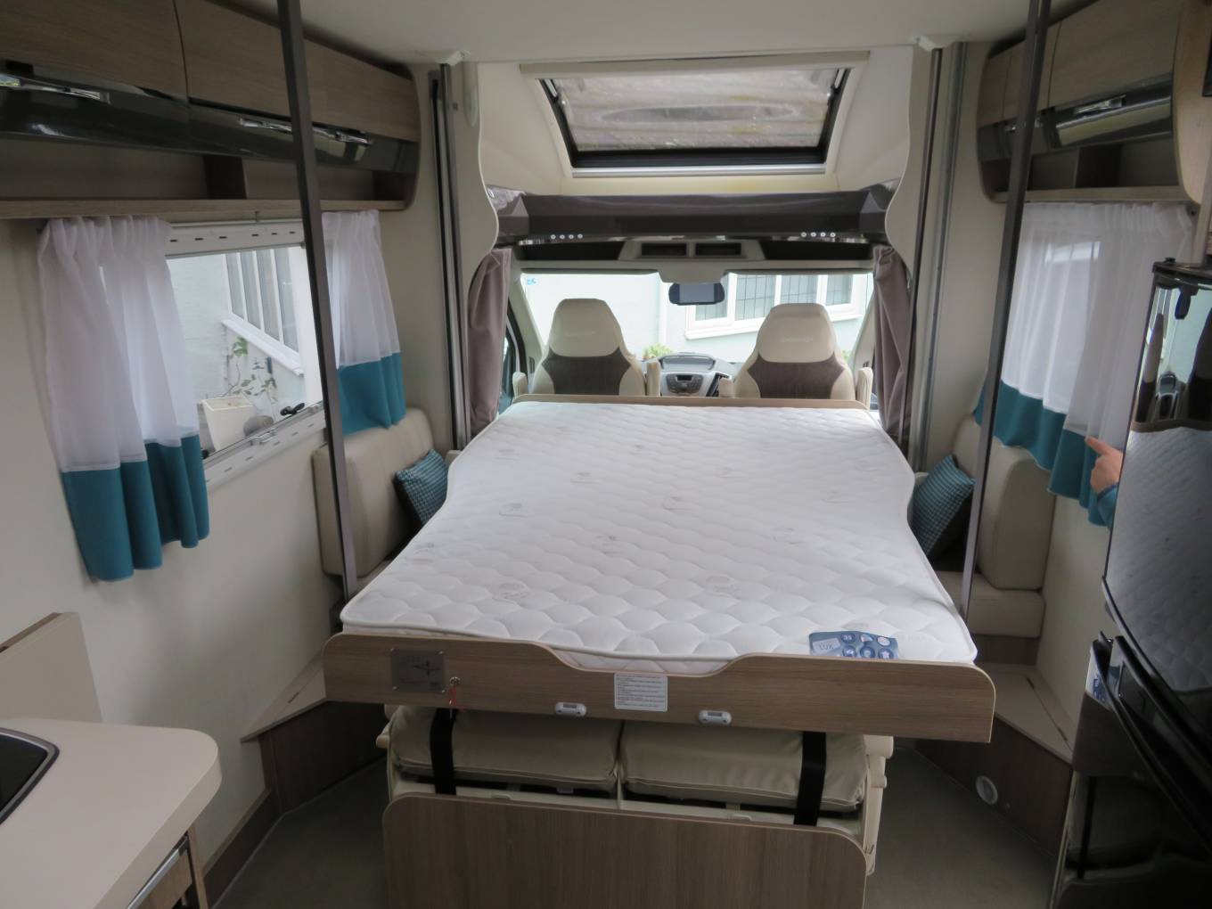 drop-down island bed. Situated in the roof of the vehicle when not in