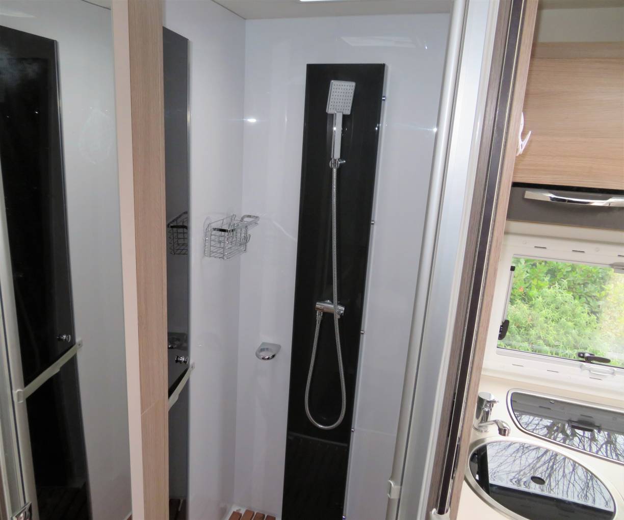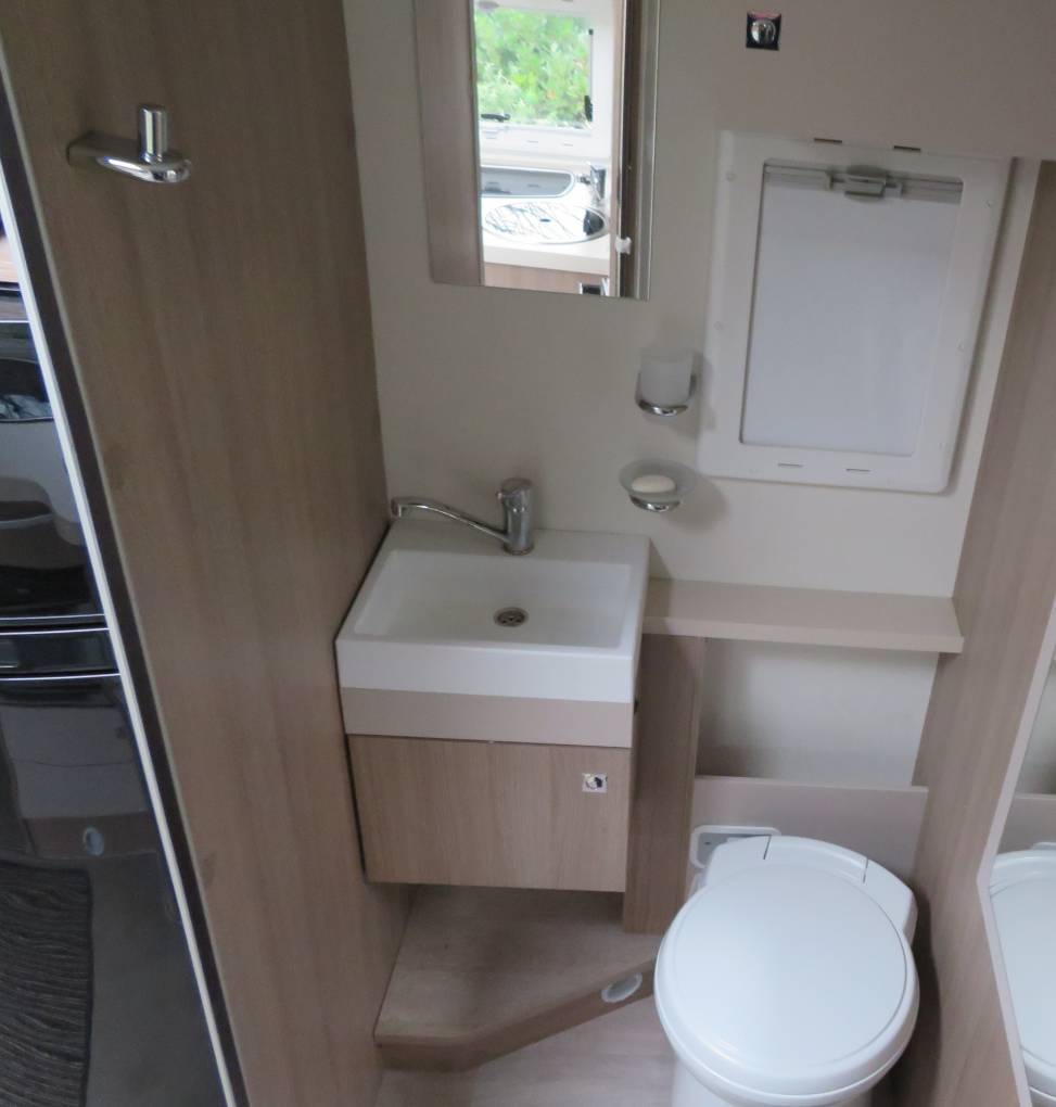 cassette toilet, wash basin with mixer tap and large separate shower. At