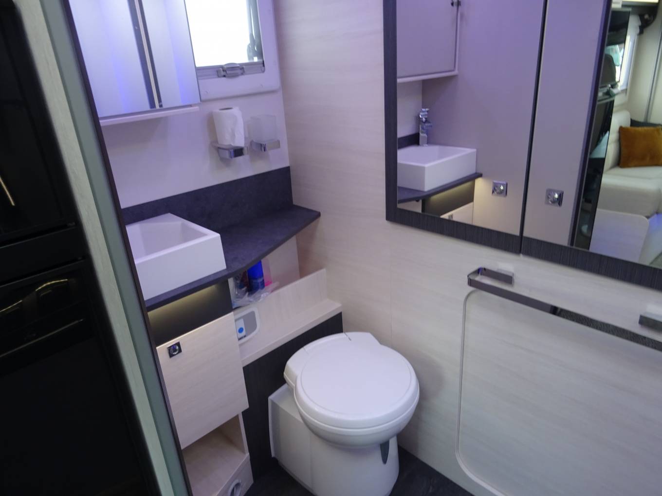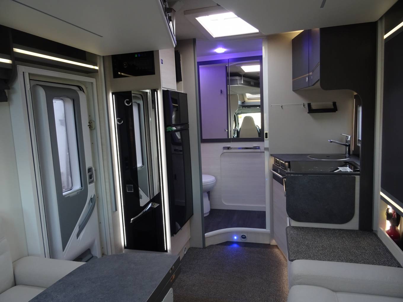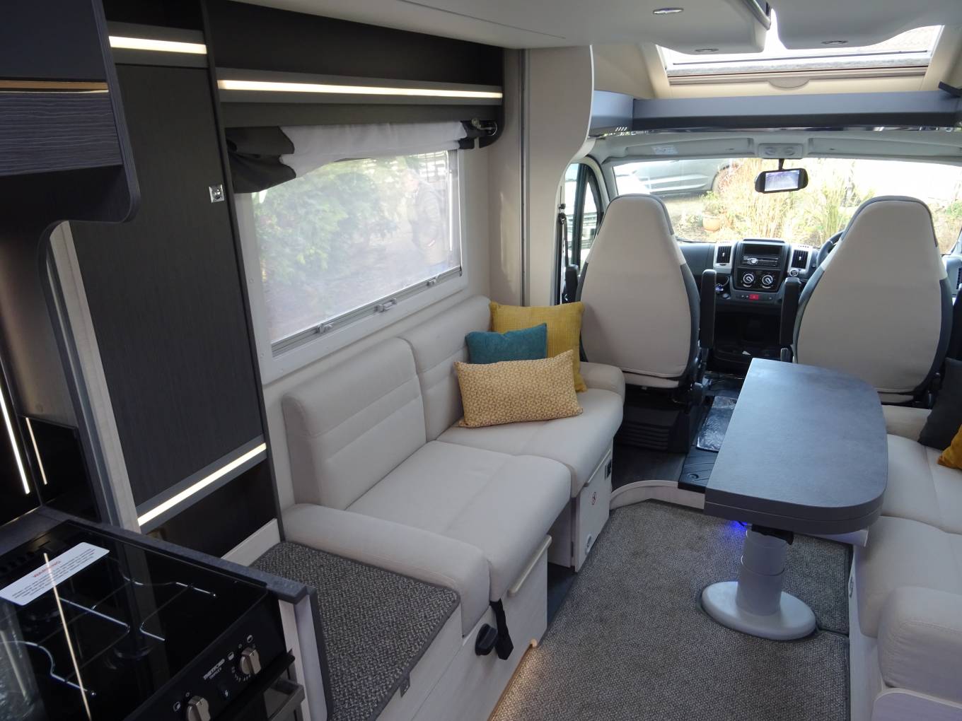 The detail and design in the habitation area is just stunning and a lovely place to relax and unwind, with pale wood units, light and neutral upholstery complimented by LED mood lighting and an efficient diesel heater, make this a serious all year round motorhome.