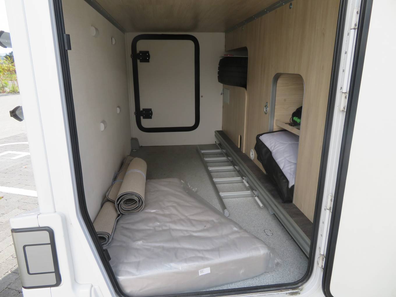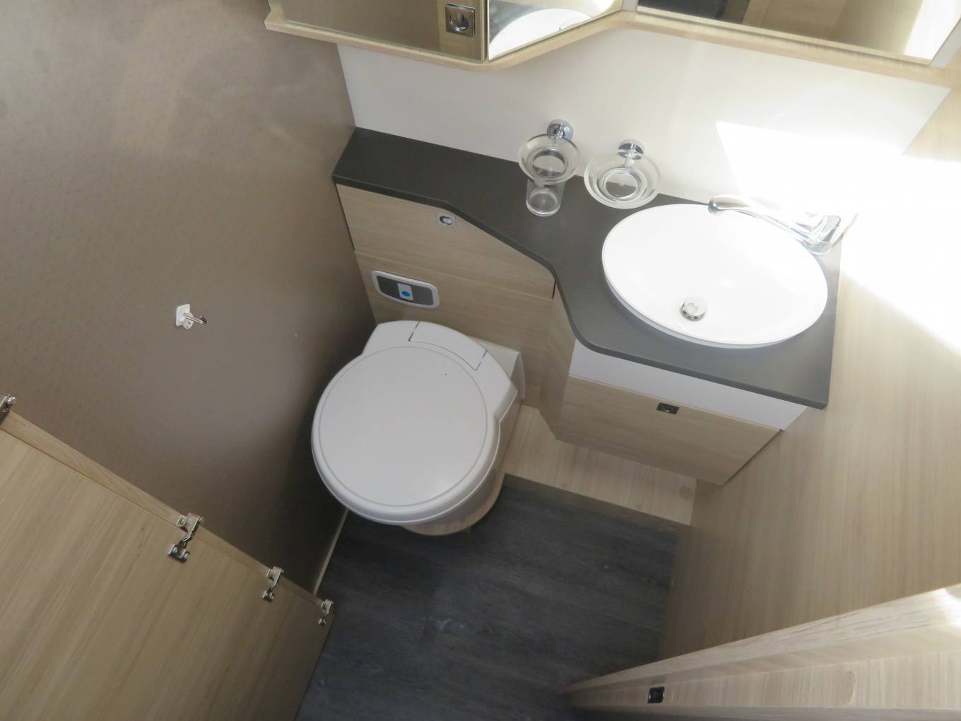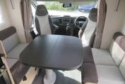 The Chausson 777 GA features 2 x large high level `long ways` single beds at the back of the Motorhome, (a `cuddle cushion` is provided which converts 2 x single beds into a large double bed). over a massive garage below, with tall boy wardrobes conveniently located at the base end of the beds for excellent clothes storage. A separate washroom and step-in shower can be segregated from the bedroom and or the forward lounge area, (useful if you have guests on board). There is a well-equipped central kitchen with good storage options, and a tall boy 3 x way fridge sits behind a spacious `smart lounge` where belted travelling seats can be created if required. The Electric drop-down double bed over the lounge increases sleeping capacity from 3 to 5 x persons, (4 x belted seats). and all this equipment and specification comes within an overall motorhome length of just 7.2 meters.