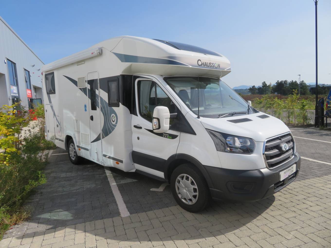 Motorhome Depot North Wales present a very nice 2021 Chausson First Line 777GA, Based on the Ford Chassis with its 170BHP engine and manual 6 speed gear box this Fine example has covered just 8200 miles.
