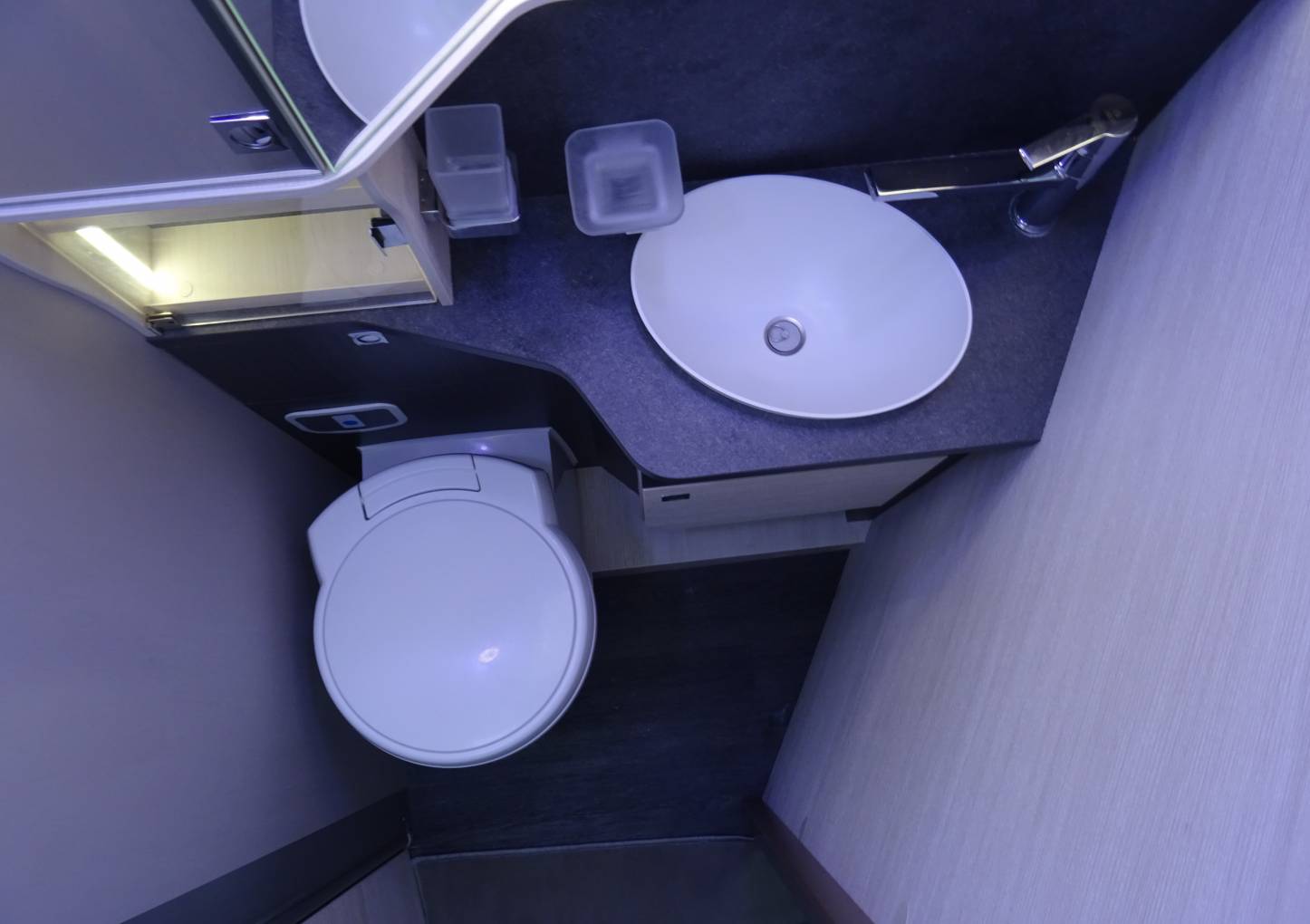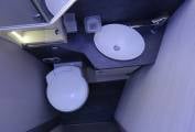 toilet/washroom on the opposite side of the motorhome. There is also a 12v fan