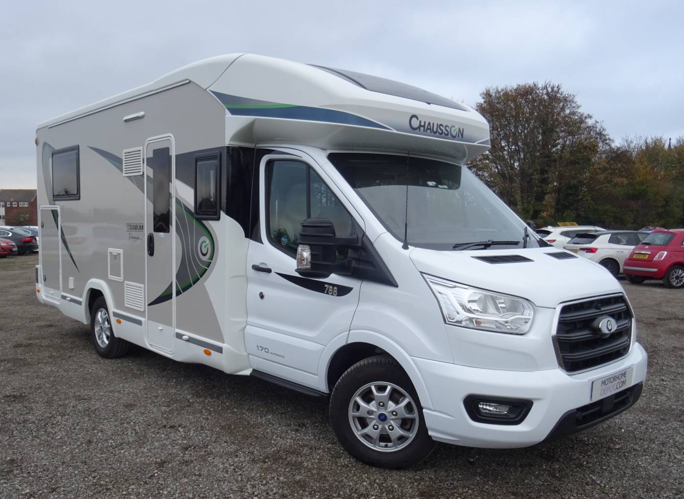 Motorhome Depot Chester and Wirral are pleased to offer for sale this 1 owner, 2021 Chausson 788 Titanium Premium Motorhome, a modern stylish and practical motorhome. First registered in May 2021 this motorhome uses the impressive ‘car-like’ Ford Transit chassis, with a 2 litre, 170 BHP, Euro 6 engine using a 6 speed automatic gearbox. It has covered 10,700 miles and has been very lovingly cared for. The cab has swivel seats, aircon, electric windows and mirrors, reversing camera, wrap around blinds, DAB radio, cruise control and adjustable armrests. The vehicle is protected by a top of the range Sentinel 5 alarm and has a Phantom tracker fitted.