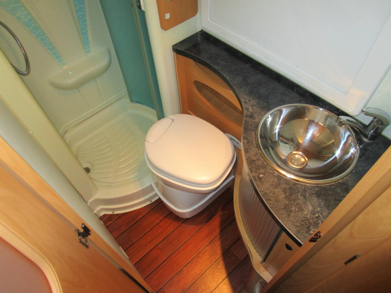 separate shower, Thetford cassette swivel toilet and hand washbasin with vanity