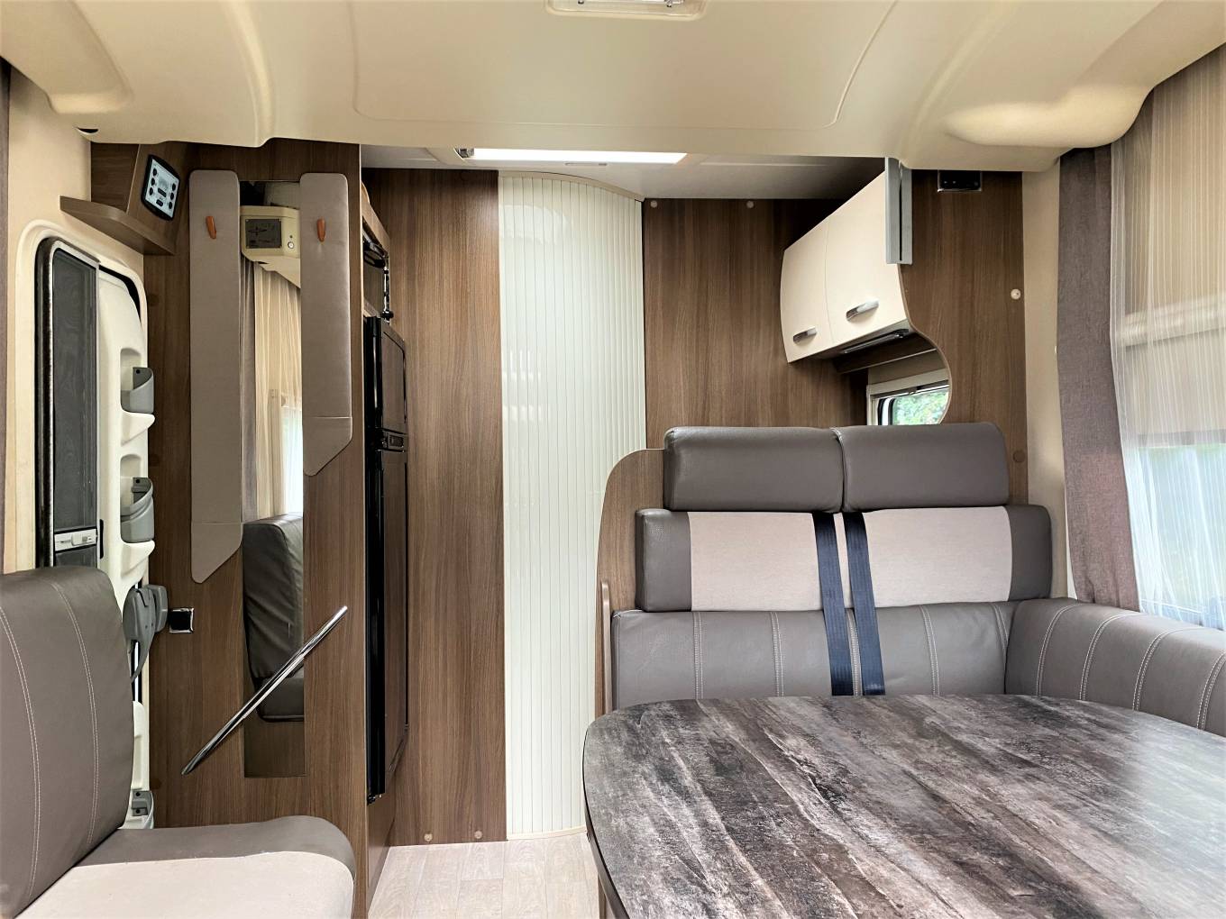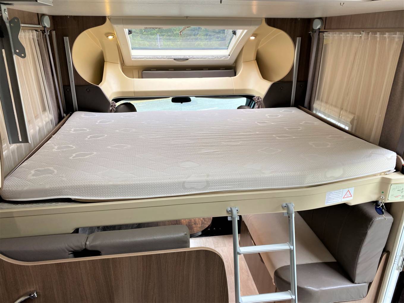 For such a small motorhome it has an amazing amount of space making great use of the drop down front bed and front facing seat belts.