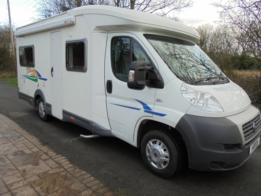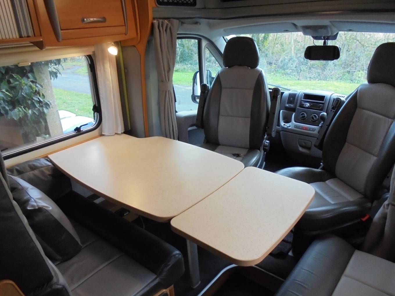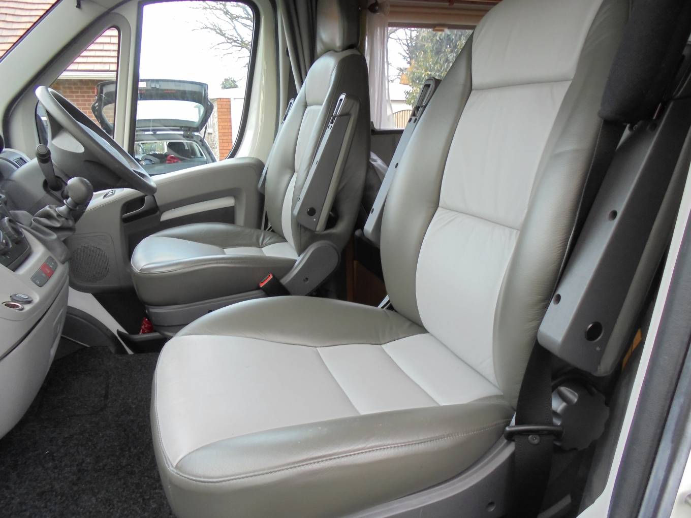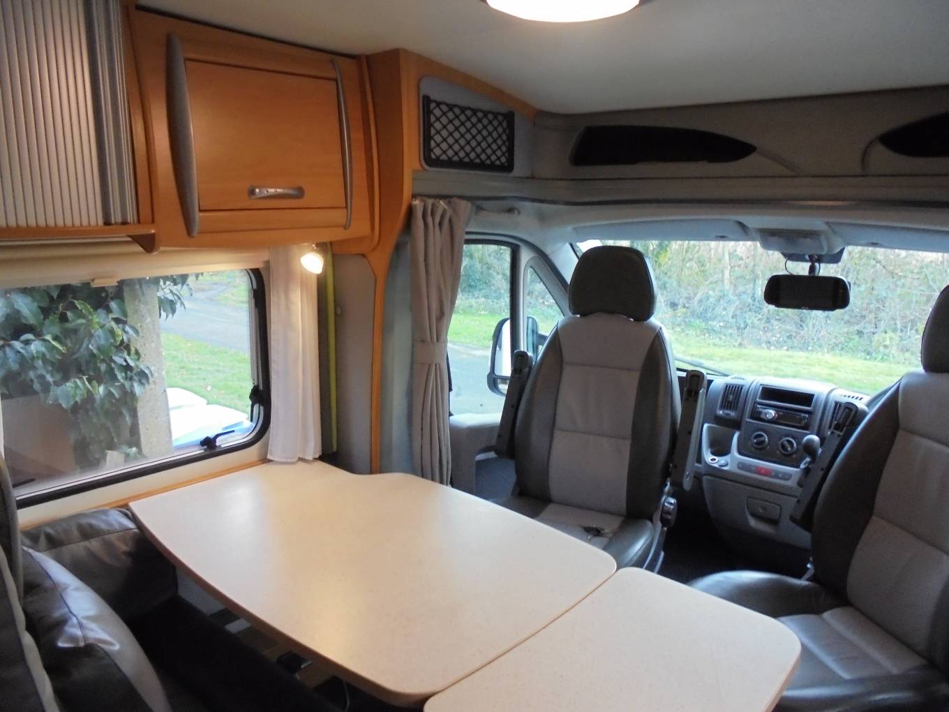 2009, Chausson Flash 08, 4 berth, low profile with fixed bed. This is a lovely motorhome with leather interior, well maintained and 25,354 miles on the clock. To the rear there is a fixed double bed next to which is a good sized bathroom with separate shower compartment. In the centre is the kitchen and at the front is the lounge area with adjustable table and 2 captains seats. It comes with 4 seat belts, twin rear camrea system, cruise control, blown heating, TV, tow bar and bike rack. It also comes with rear heating for the habitation area when traveling, gas bottle and is ready to go. Call for more photos and information or to arrange a viewing.