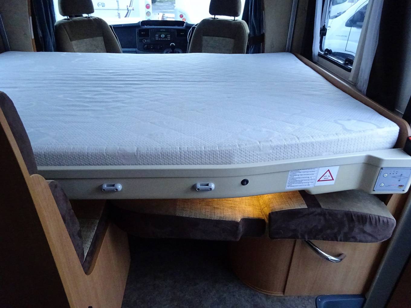 For a couple travelling alone the electric bed can be lowered to seat height allowing easy access without the use of a ladder.