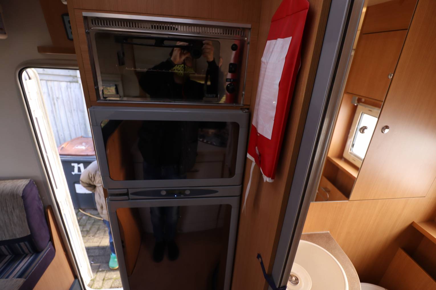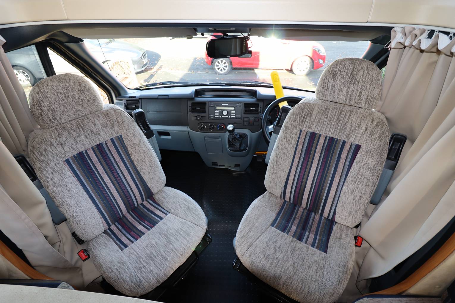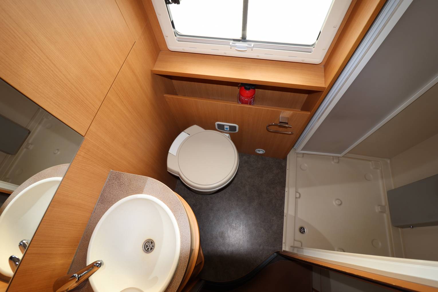 A Lovely compact motorhome with an electric drop down double bed and 4 travelling seats. The lounge is spacious with both front seats swivelling. The table is fixed and drops down to make a double bed. Above the lounge area is a electric drop down bed that can be left made up and stows neatly away. The kitchen is central fully equipped with the washroom across the back with a separate shower cubicle. Ample storage externally and internally. Extras include; Refillable Gaslow 11KG bottle; Satellite TV (TV not Inc), Awning, BBQ point, Twin lens reversing camera; Solar panel, Twin Leisure batteries, bike rack and Tow bar.