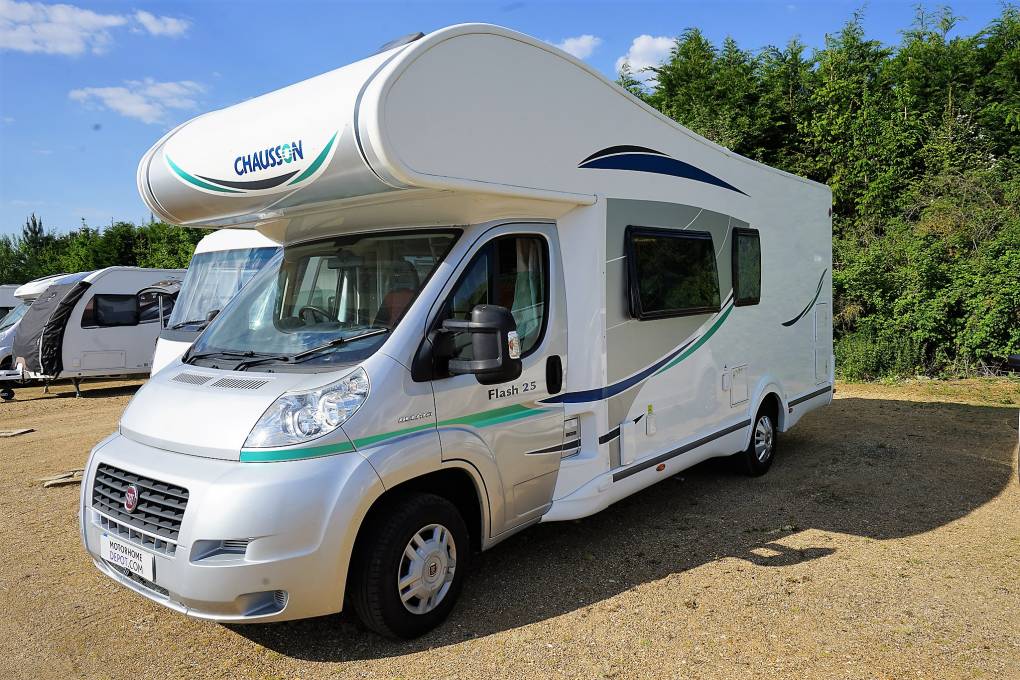 Ideal Family Motorhome 2014 Chausson Flash 25, 6 berth motorhome with 6 belted seats, Rear bunk Beds, Over cab Bed, Rear Garage, Washroom with Separate Shower. 4 Bike Rack. TV/DVD. Webasto Diesel blown air heating, Gas & Electric Water heater.