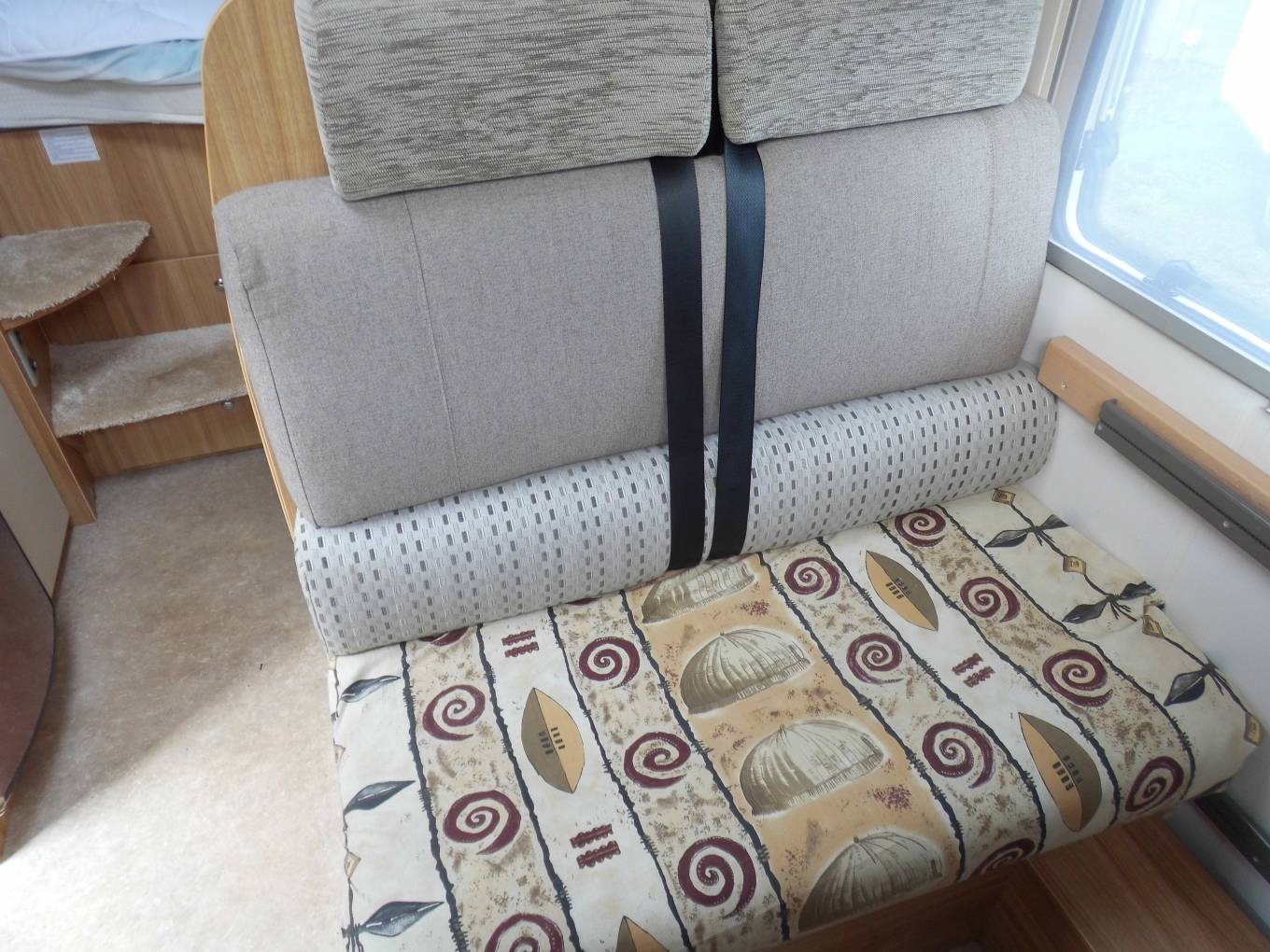 This compact design makes great use of space with a transverse rear bed over a large garage area which is height adjustable for different load sizes. A well equipped kitchen area includes 3 way fridge, hot water heater, oven, sink and ample storage cupboards. Washroom facilities include shower, basin and cassette toilet. The front lounge area has swivel chairs, travel seating for 4 persons and on the road heating. Other features include Ford chassis with a 3500kg max weight, air conditioning, cruise control, awning, reverse camera.