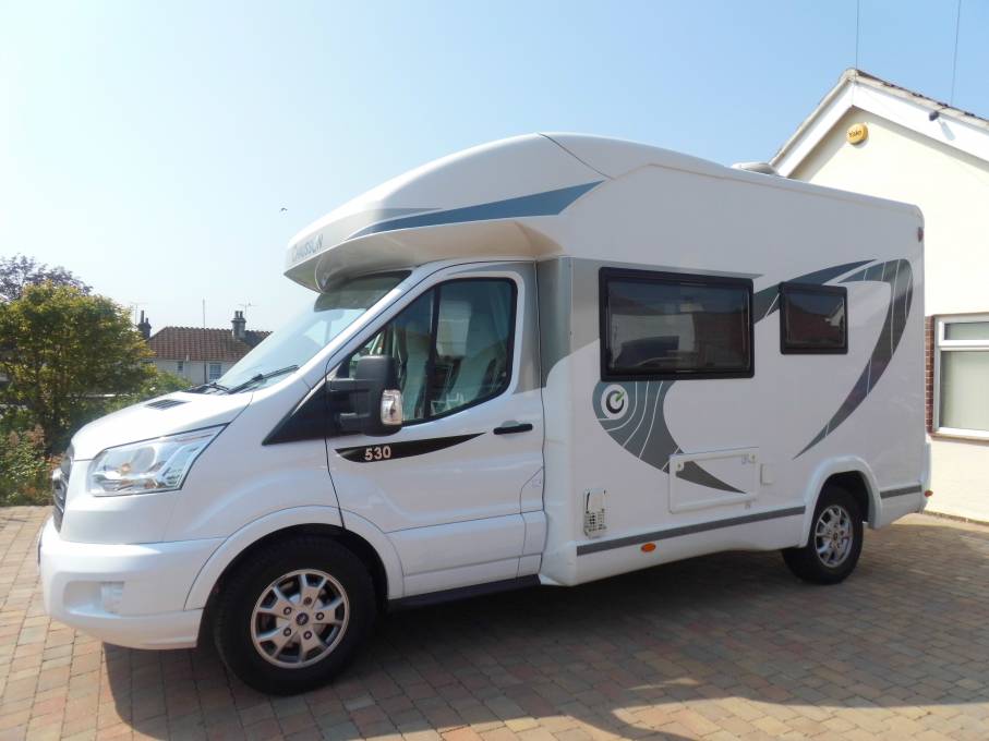 The Chausson Flash 530 is a good-looking low-profile motorhome which has a raft of standard features that would be extras on many other manufacturer’s models. This model has 170 Bhp upgrade, it also benefits from a solar panel, It offers very comfortable travel and accommodation for two. In fact, four people are not going to feel overly cramped, despite its modest footprint. The size of the end washroom is particularly impressive. Chausson has squeezed a lot into this sub-6m ’van, while keeping the MTPLM at 3500kg and ensuring a healthy payload of 712kg. It has a stylish, contemporary interior heating system is powerful and works of diesel